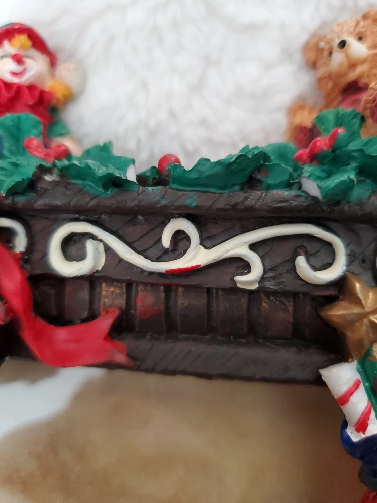 This Grandeur Noel mantel and fireplace photo frame is the perfect addition to your Christmas decor. Made of durable resin material, this frame features a festive design with mantel and fireplace elements, making it a great way to display your favorite holiday memories. The multicolor frame is suitable for any occasion and will add a touch of nostalgia to your home. This collectible item is manufactured in China and is not handmade or modified. It is a great gift for anyone who loves vintage Christmas decor. Measurements are approximately 10.25 inches length by 8.25 inches in height by 1.50 inches in width and weighs approximately 2 pounds 11 ounces. Pre-owned and in good condition. It does have a chip on two leaves on top of the mantel and some lack of paint here and there. See photos for further details. Please see my other listings.