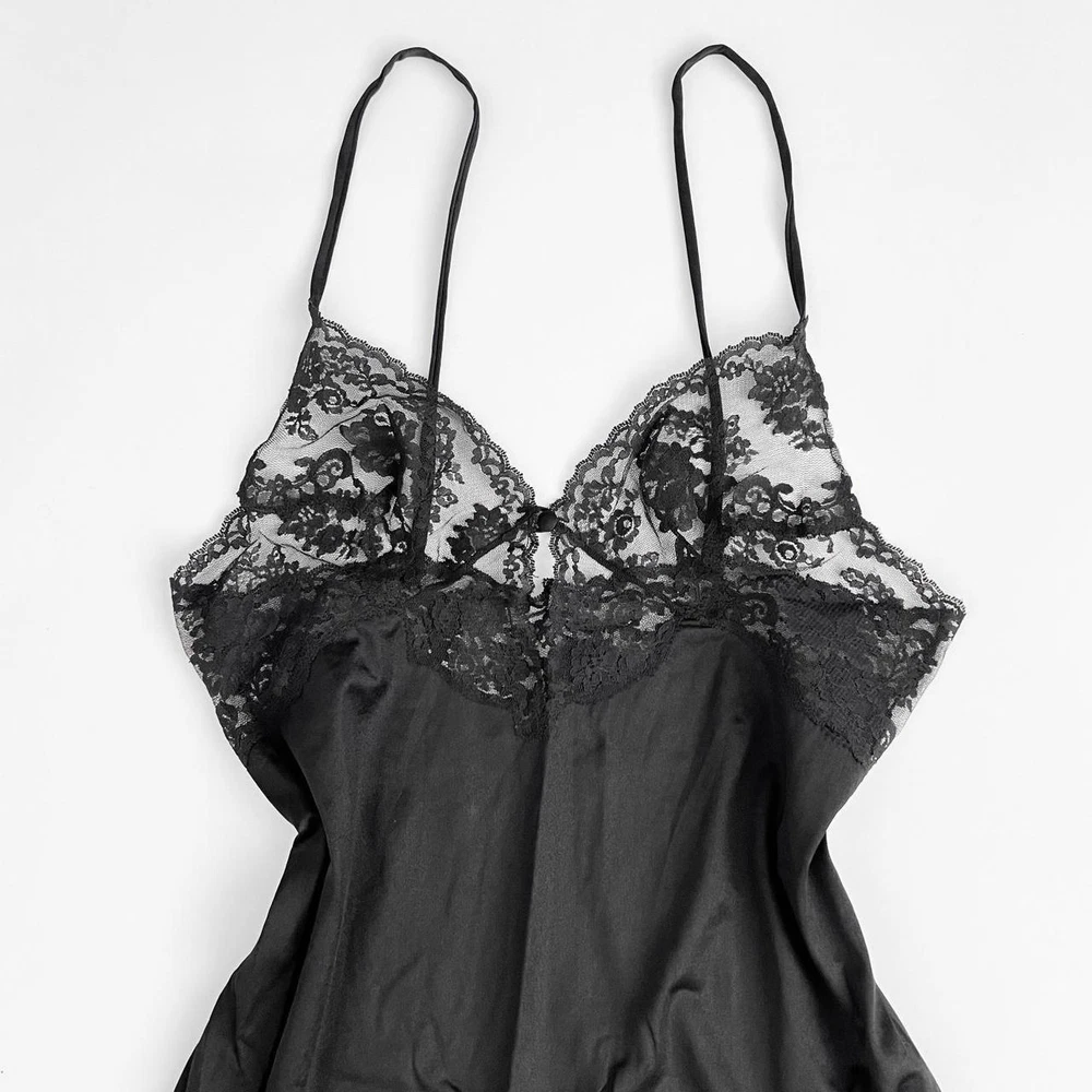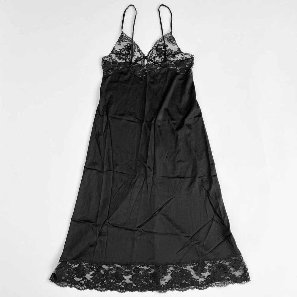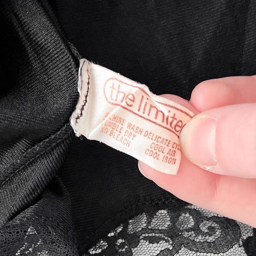 vintage “the limited” black lace trim maxi slip dress. size medium bust: 15.5”, length: 39.5” nylon model measurements: bust: 32a, waist: 25”, hip: 34.5”, height: 5’6