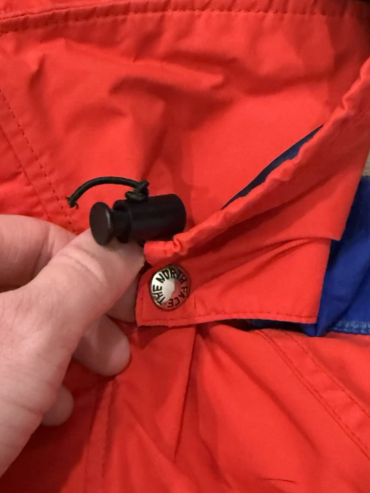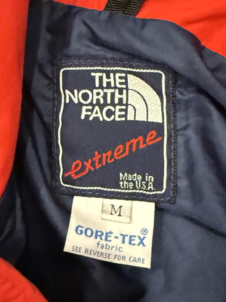 Stain shown! The Vintage 90s The North Face Extreme Gore Tex Jacket is a stylish and functional outerwear piece for men in size medium. Featuring a red color with a solid pattern, this mid-length jacket is made of durable nylon outer shell material and lined with nylon. It is equipped with a full zip closure, hood, and is windproof and waterproof, making it ideal for outdoor activities like walking, skiing, and hiking. This classic jacket is a timeless piece with a retro 80s and 90s theme, perfect for casual or travel occasions.