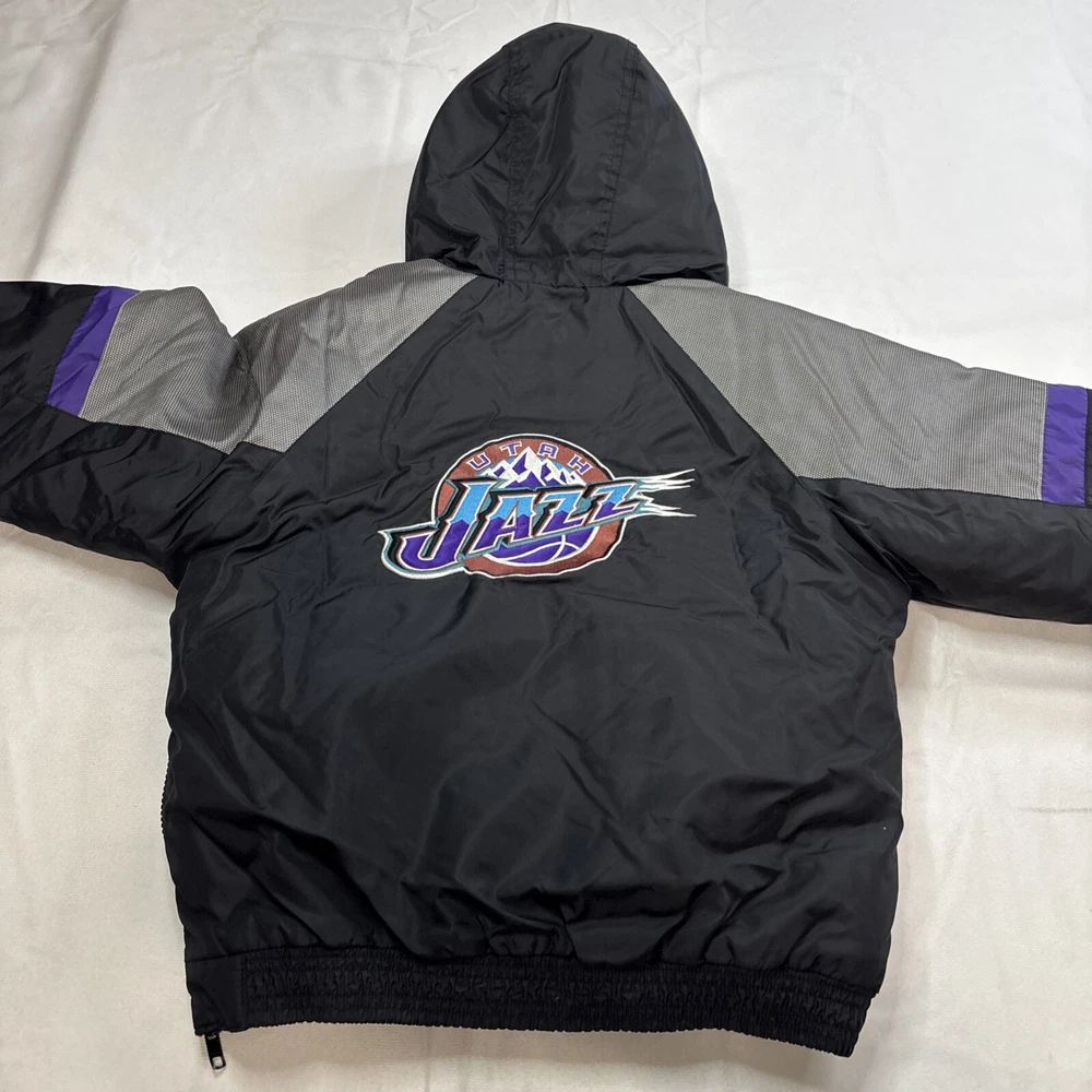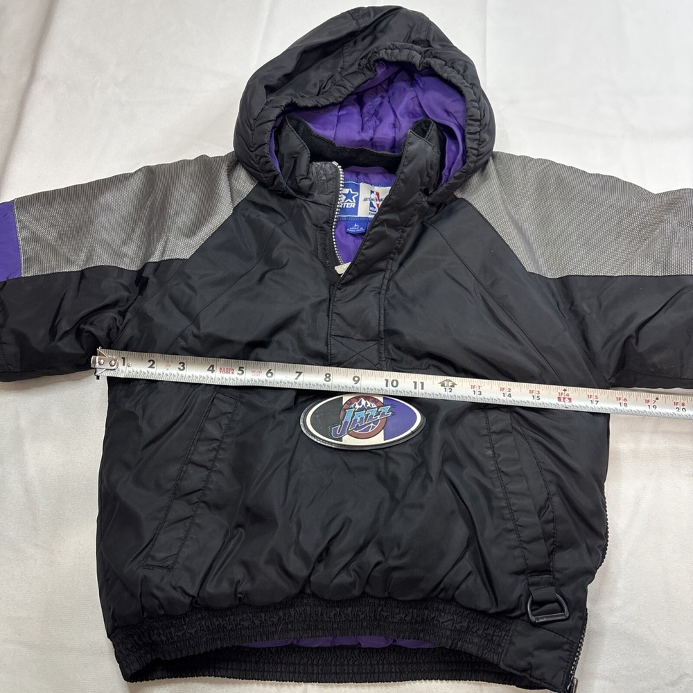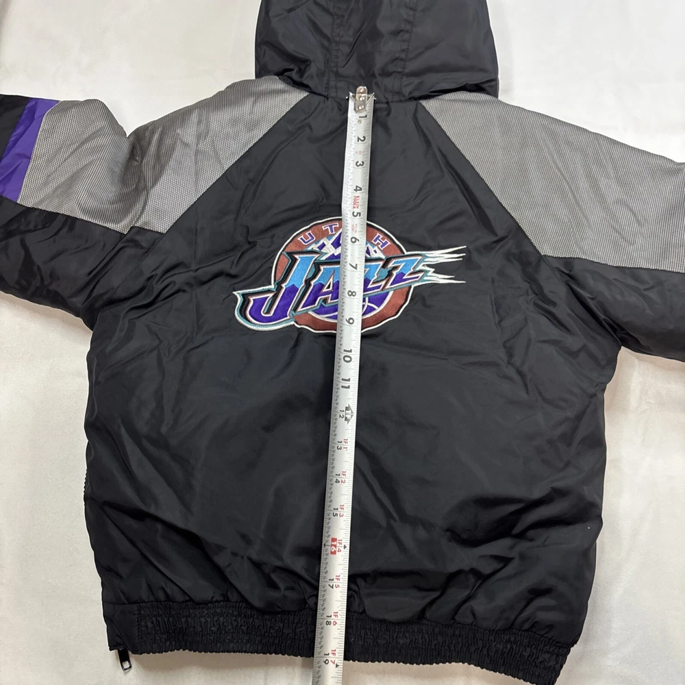 Boys vintage Utah Jazz starter pullover half zip jacket 90s Black Gray Hood. Condition is Used. Shipped with USPS Ground Advantage.
