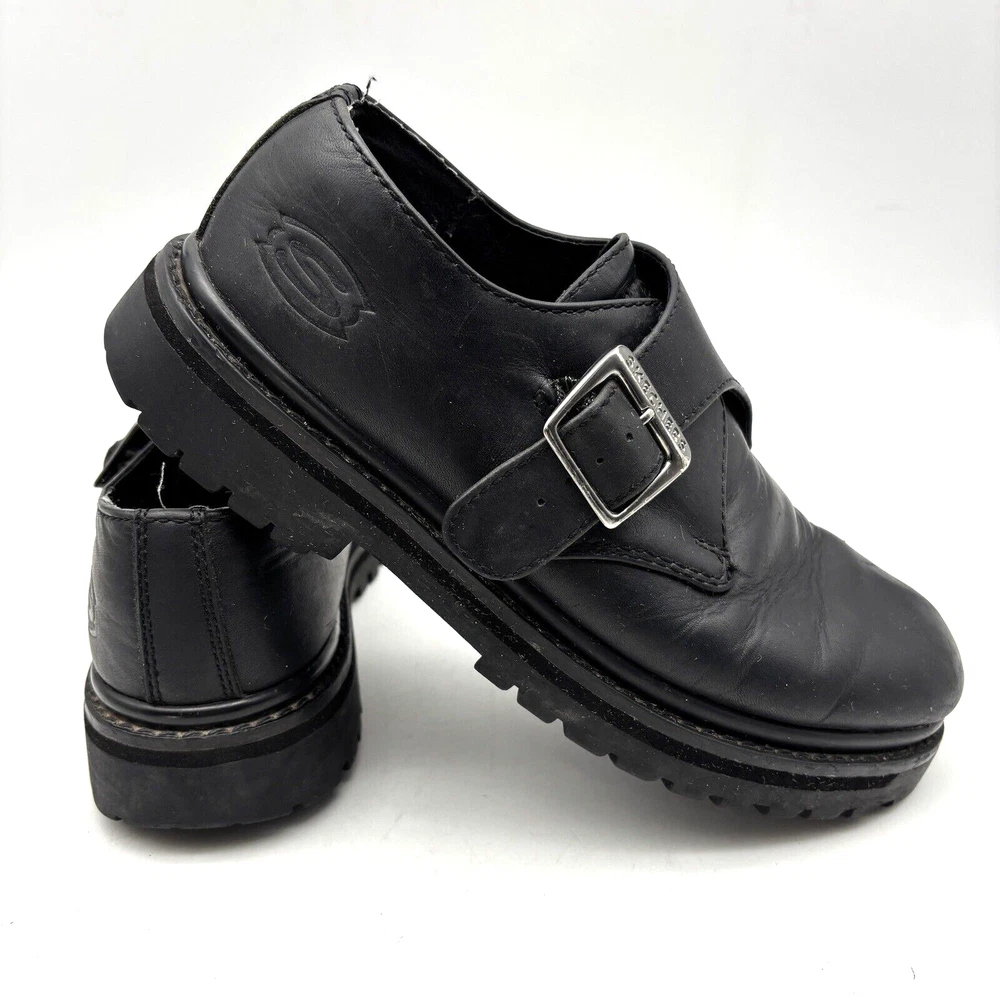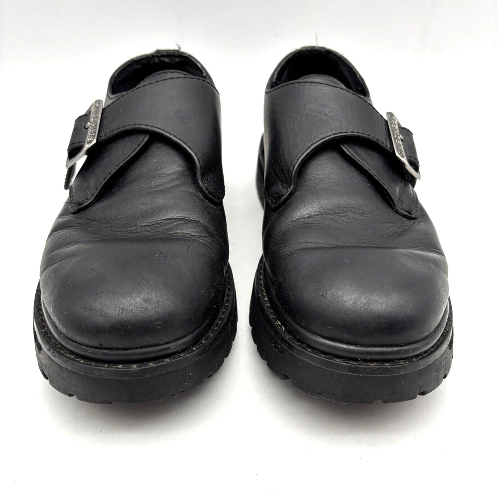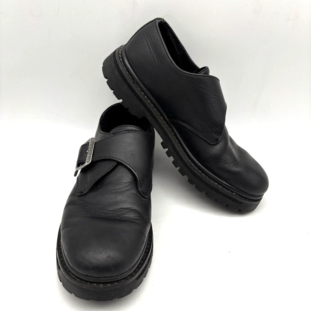 Vintage 90s Y2K Skechers 6649 Black Leather Chunky Buckle Loafer Men7.5 Women9.5