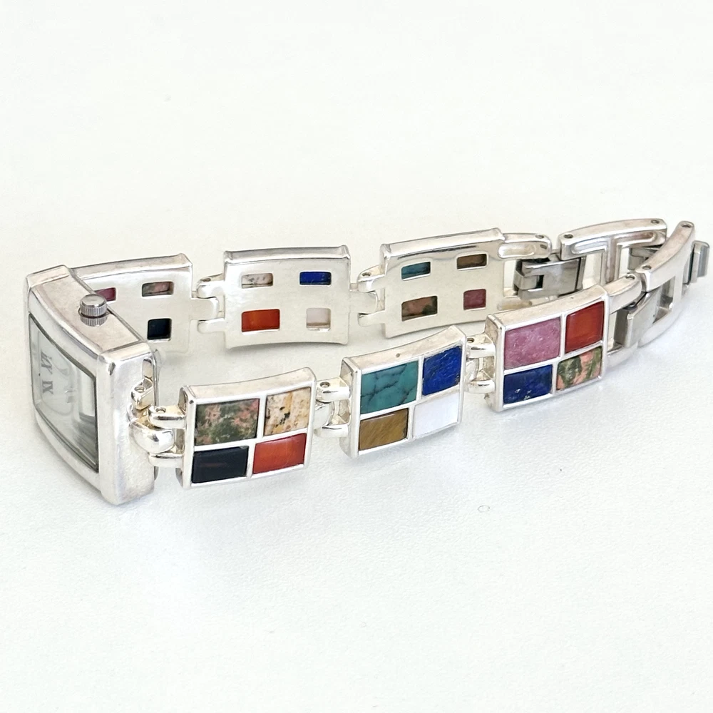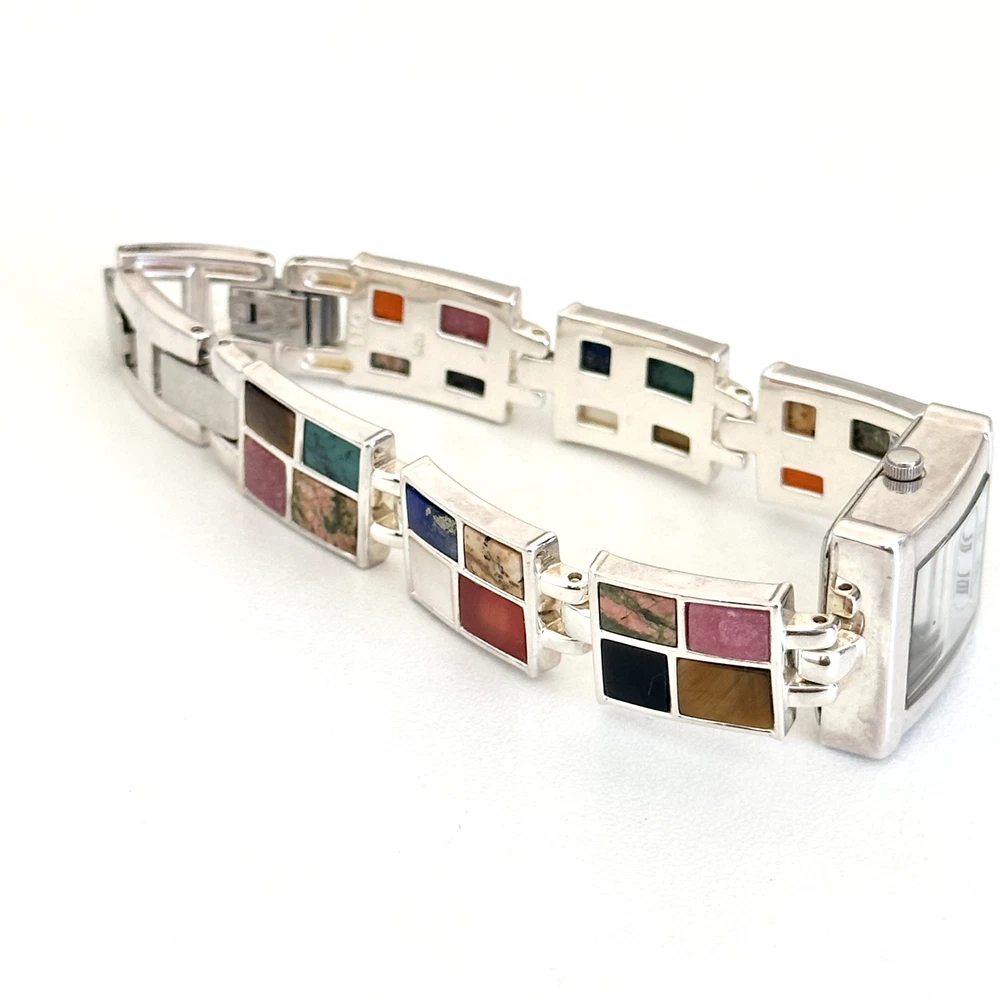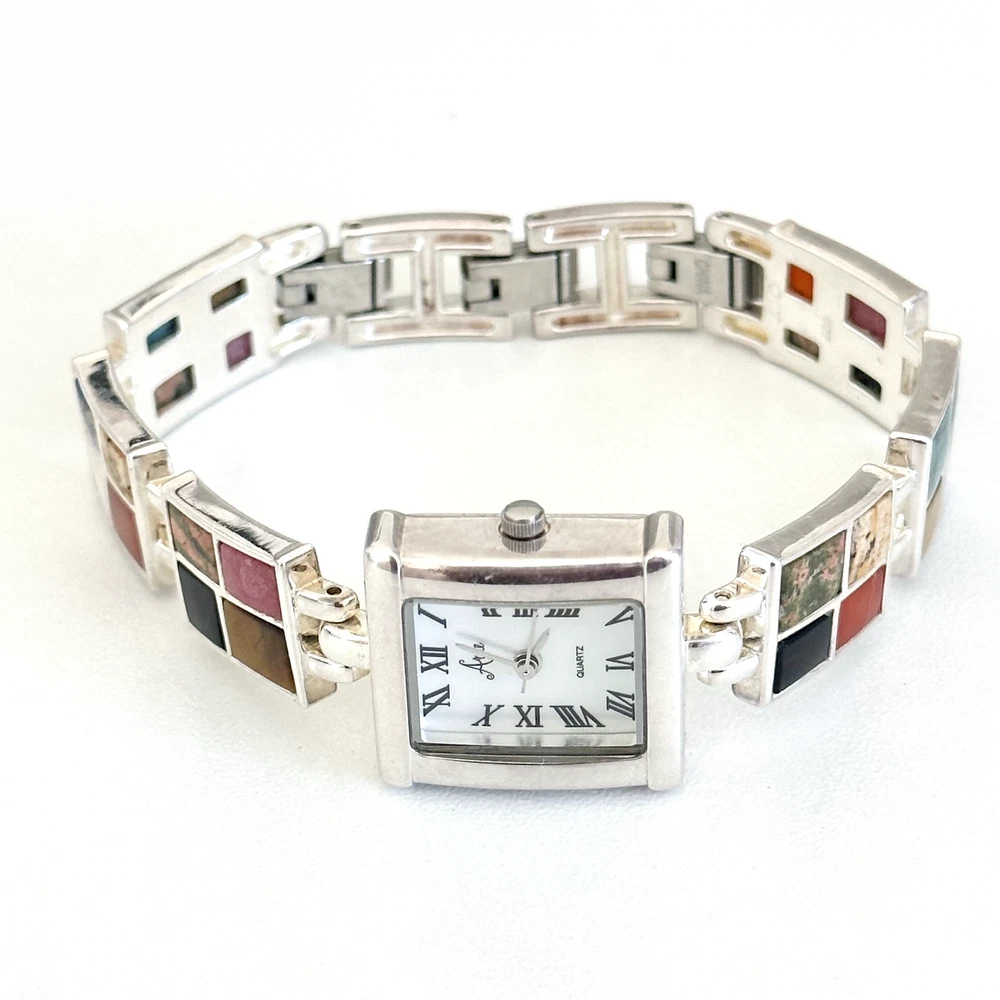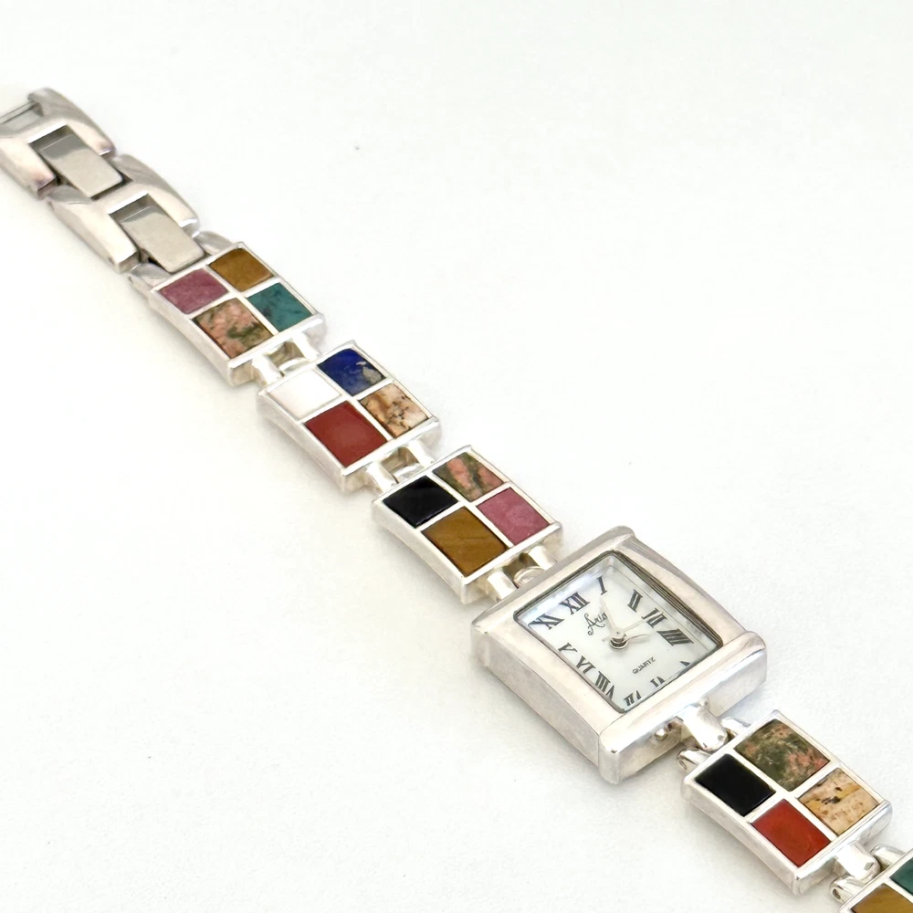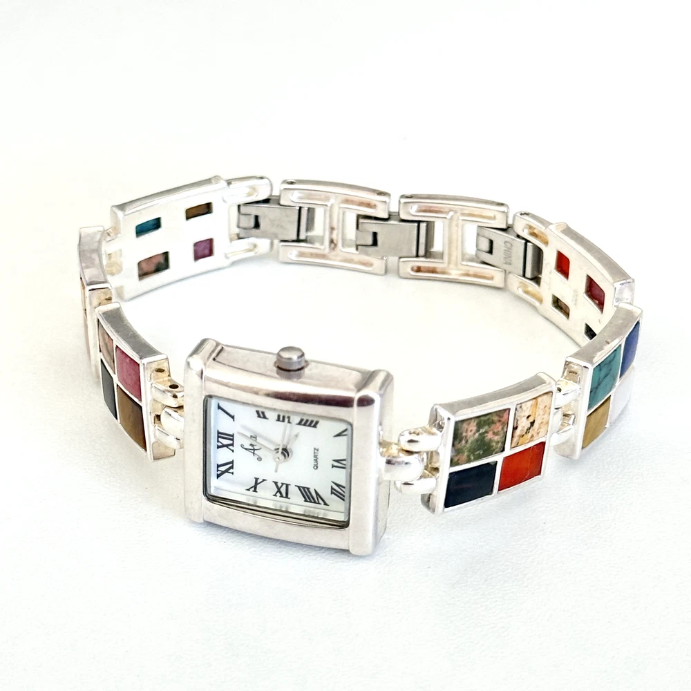 Vintage 925 Sterling Silver Aria Multi Gemstone Watch 7" Length: 7" Weight: 46.4 grams Signed: "OIT 925" on the chain part and "Aria Stainess Steel" on the clock part, Please note, needs a new battery. Otherwise in very good vintage condition. - Fast shipping, I ship the same or next business day! I also combine shipping. - Thank you so much for shopping with me and please check out my other jewelry listings, I post new pieces daily!