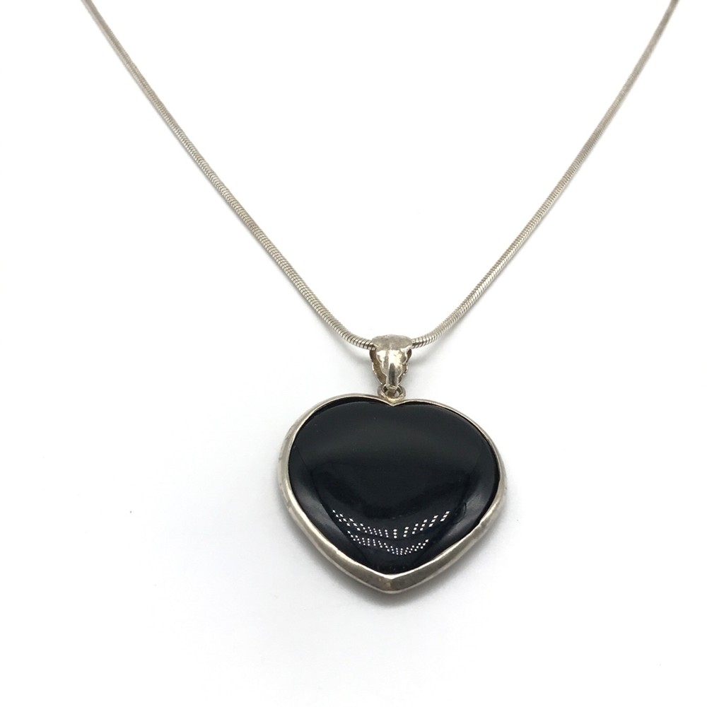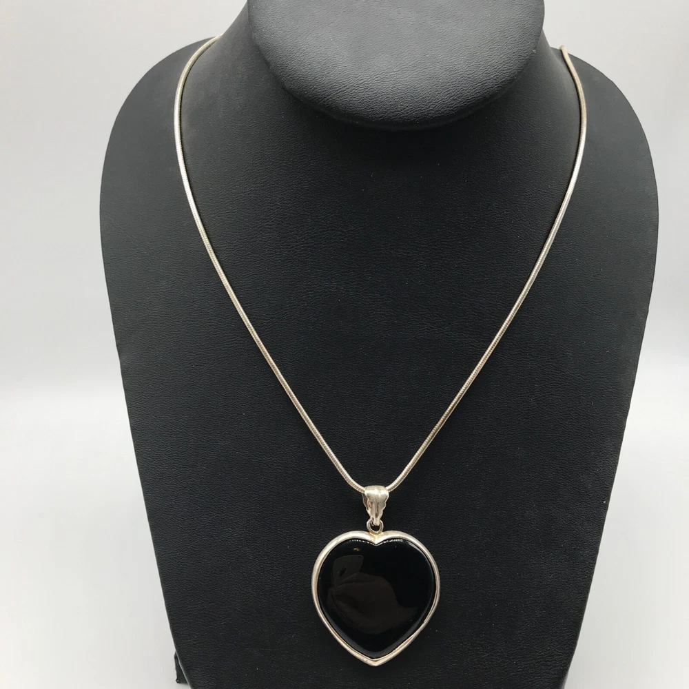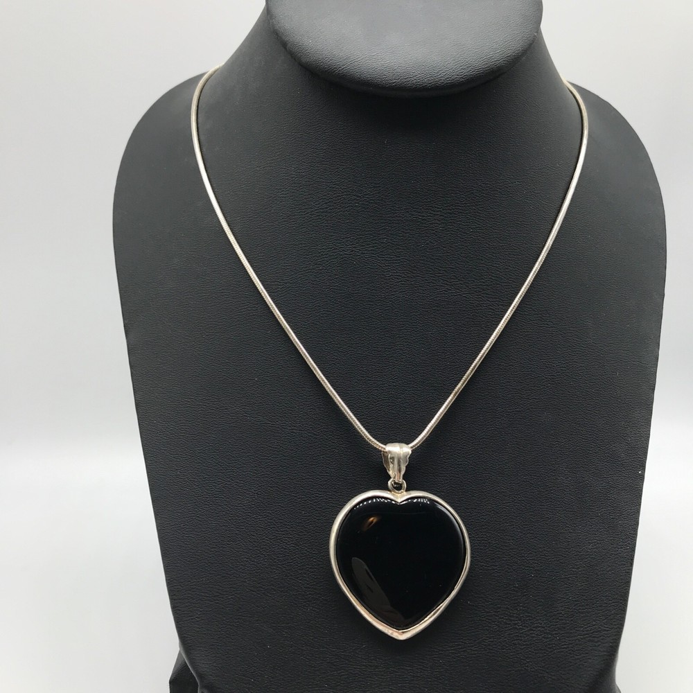 Vintage Solid 925 Sterling Silver Black Onyx Heart Pendant On Chain Necklace 24" I tem details: Chain length: 24" Pendant size: 1.70" long by 1.25" wide Weight: 19.8 grams Marking: 925 - Please note, most of my store's items are vintage or pre-owned. Most items are in very good/good estate condition, but please also view all pictures. Well cared for. All sterling silver is marked 925 or tested. Please feel free to ask any other questions you may have! I also combine shipping. - Jewelry is shipped packaged securely with a gift box or pouch . - I typically will ship same or next business day! - Thank you so much for shopping with me and please check out my other jewelry listings, I post new items daily!
