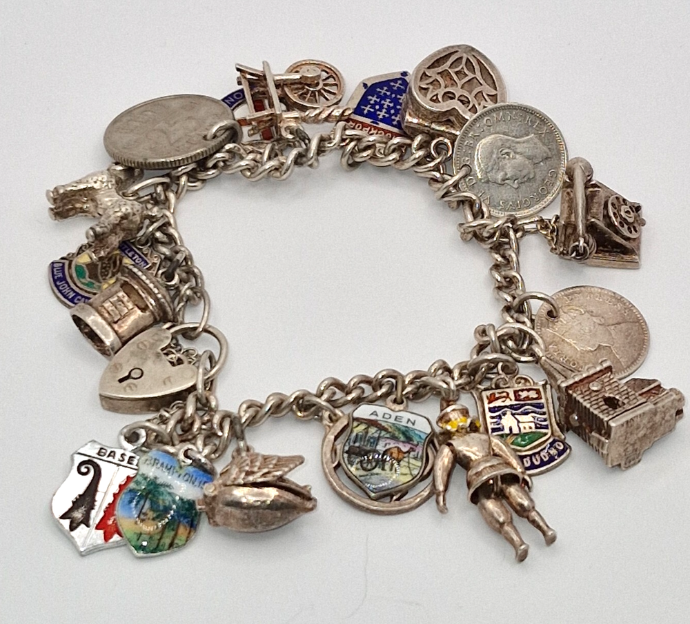 This vintage charm bracelet is absolutely stunning! The 19 unique charms are full of intricate details, from the swan that opens to reveal a fairy to the playful articulated clown. The solid sterling silver feels substantial and high-quality, with each charm telling its own little story. The mix of letters, coins, and shields gives it a timeless, eclectic charm. Perfect for layering or wearing alone—it’s a true conversation piece!