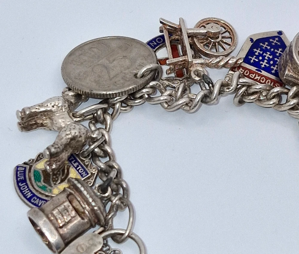 Vintage Sterling Silver Charm Bracelet 925 Hallmarked – Total Weight: 53.03 g – Width: ≈9 cm – 19 unique charms Featuring a stunning collection of 19 vintage charms on a solid sterling silver bracelet, this piece is a true statement of craftsmanship and storytelling. Each charm is individually crafted and rich in detail: Filigree heart locket with missing gemstone (contains internal ring) Letterbox, telephone, spinning wheel, articulated clown Swan that opens to reveal a fairy Number “13” in a circle Shields: Castleton, Stockport, London, Llandudno, Aden, Basel, Bramyton Coins: Netherlands 25 c (1951), India 2 annas (Queen Victoria, 1887), George IV threepence (1938) - unsure if these coins are real or if they are replicas Blue John Cavern (Castleton) charm, dog charm, church with steeple This heavy (53 g) vintage piece showcases a mix of British heritage, international mementos, and whimsical designs. The heart locket adds sentimental charm—perfect for displaying photos or keepsakes. Condition: Good pre-loved condition; light wear consistent with age. Charm surfaces show age-appropriate patina. Bracelet and charms are intact; some coins may be replicas (as noted). Gemstone is missing from the locket—see photos for detail. A unique, heavyweight collector’s piece full of character, history, and potential for personalization. Postage: Tracked shipping within Australia, carefully packaged for safe transit. International shipping available. Why Buying from VibeHQ Helps the Planet Every item you buy is more than just an item — it’s a stand against waste 🌏. We believe in sustainability, protecting the planet 🌱, and giving items a second life. Choosing pre-loved items keeps resources out of landfill, cuts paper use, and saves trees 🌳 — all while saving you money 💚. It’s a small choice with a big impact. Thanks for being responsible and helping build a greener future — one item at a time 📚. Why Shop with VibeHQ? With over 20 years serving the eBay community, VibeHQ offers a trusted shopping experience backed by genuine customer care 🤝. Enjoy free Australia-wide postage 📦, secure packaging 💧, and dedicated support throughout your purchase. Enjoy FREE Australia-Wide Postage with Tracking and Secure Packaging Worldwide Shipping available reach out for a quick quote Hassle Free Returns Proudly 100% Australian Owned and Operated All items are in stock and ready for fast dispatch Great Items at Great Prices Thousands of items to discover and explore Satisfaction Guaranteed! Got questions? VibeHQ is just a message away! Welcome to VibeHQ — Your Trusted eBay Store for Quality, Value & Service. For over 20 years, we’ve proudly served the eBay community, earning trust through reliable service, fast shipping, and genuine care. VibeHQ offers a wide variety of products including books, collectibles, homewares, lifestyle items, and more — all carefully sourced to bring you quality at affordable prices. We believe in sustainability, great customer service, and giving every item a second life. All orders are packed securely and sent with tracking. Thank you for supporting VibeHQ — where trust, quality, and great prices meet.