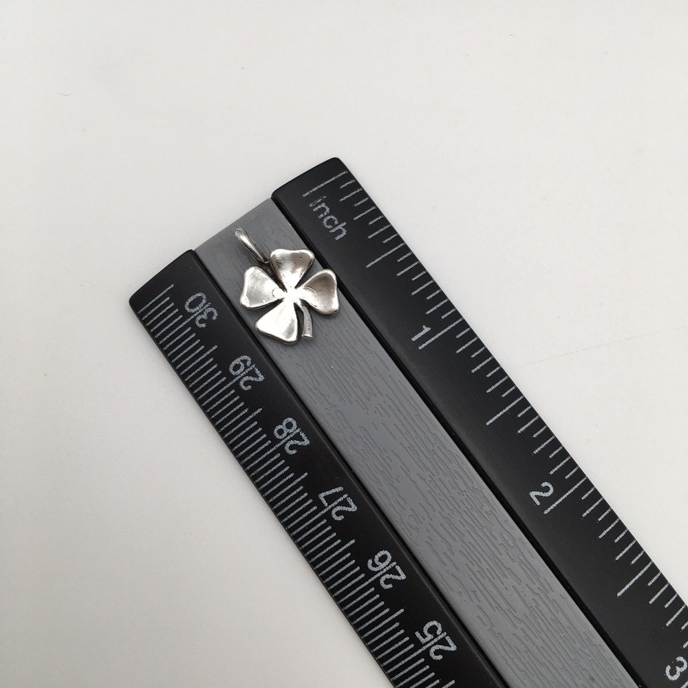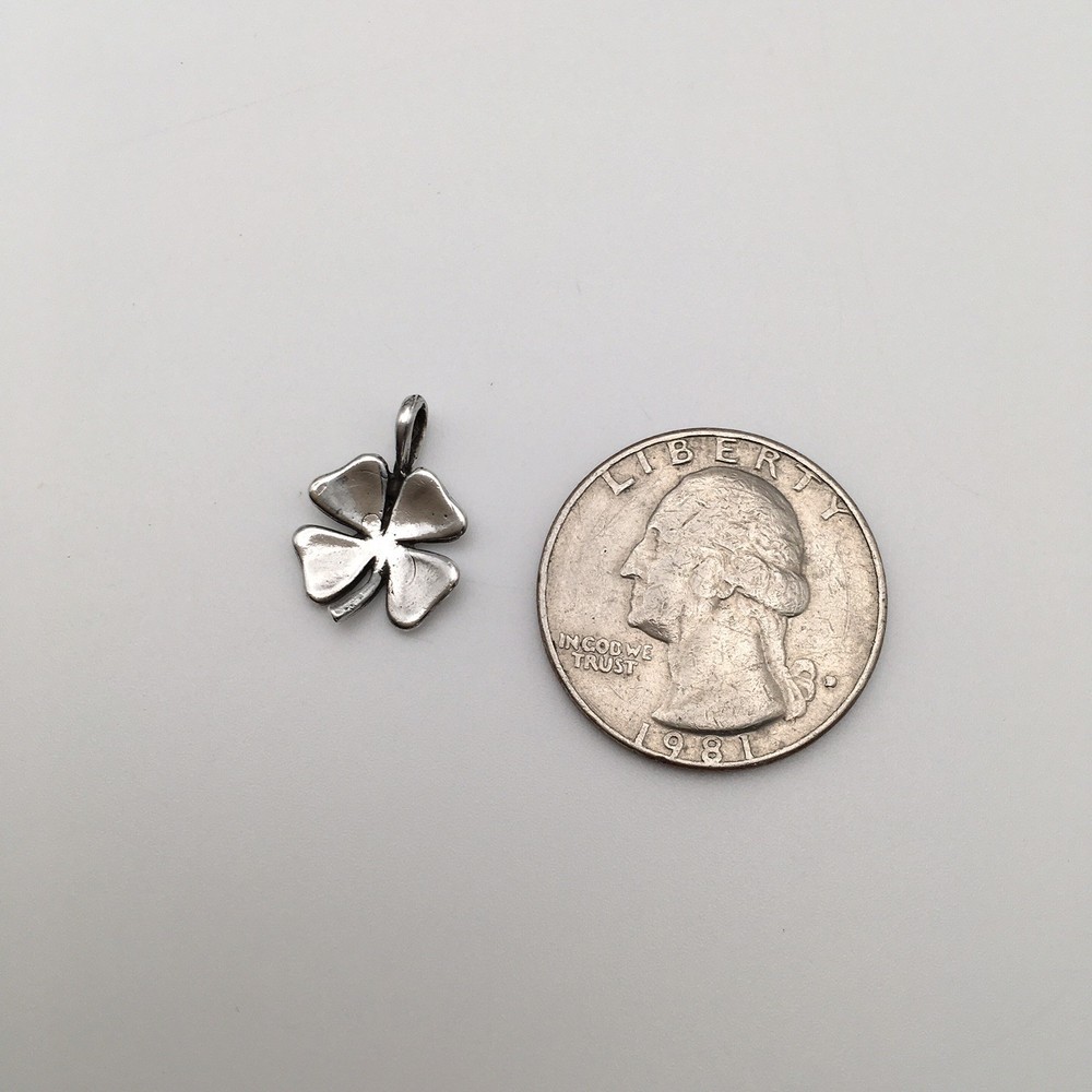 925 Sterling Silver Vintage Dainty 4 Leaf Clover Charm Sized Pendant Stamped Ster #3154 Hand polished. Measuring Tools and Quarter not included. Combined Shipping! 1st item $4.95, each additional item is $1. Max shipping cost $10. Combine shipping for up to 7 days! We value YOU! Items are returnable and fully refundable! SilverSchark began as a hobby that grew into a business. We take old retired sterling silver jewelry and revitalize it to wearable condition. Utilizing an ultrasonic machine with sterling silver solution most items are restored to their original beauty. Occasionally scratches are buffed out and some minor repairs are made to bring these tired pieces back to life. Diamonds are always tested. If a piece is not stamped or is suspected of not being sterling silver, the item is acid tested for confirmation. Tests will always be listed in the description. We understand that patina is desired on vintage or antique items so some of the listings will not be cleaned and polished. The description of each listing will tell its tale of restoration. Combined shipping is always welcome! Just ask for an invoice if your cart doesn't look correct. Max shipping cost is $10 per shipment regardless of number of items!