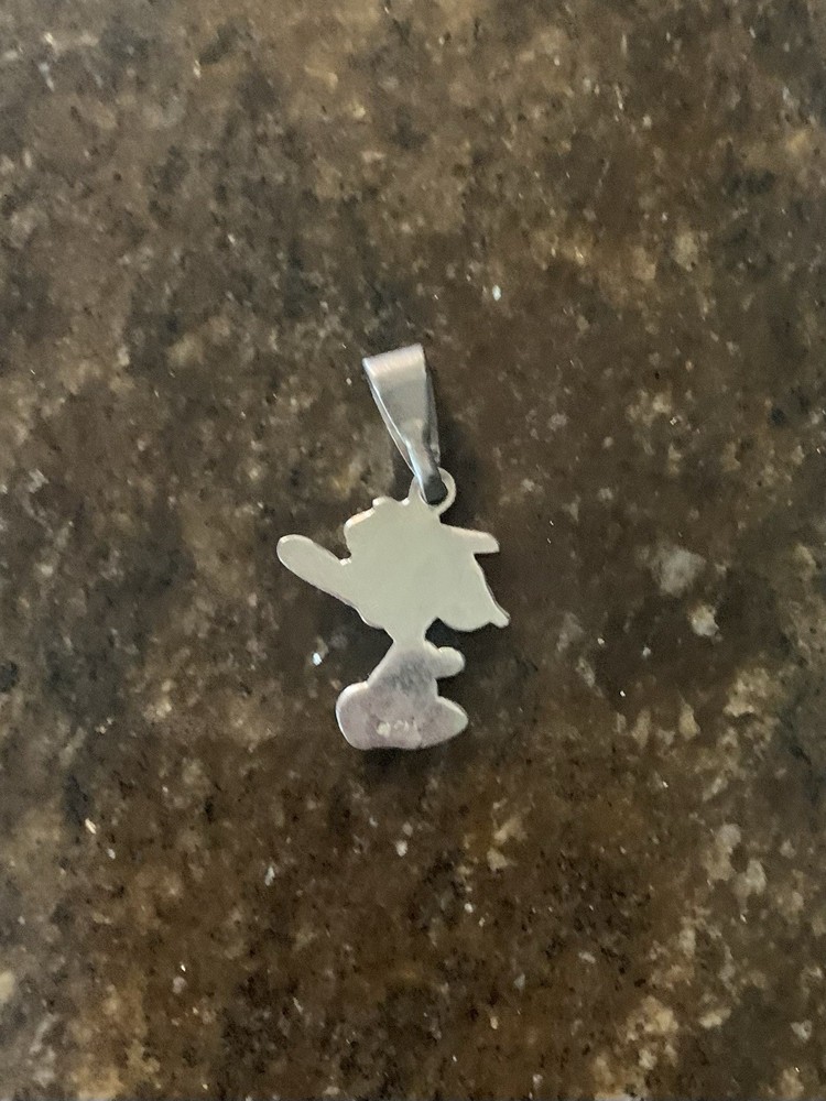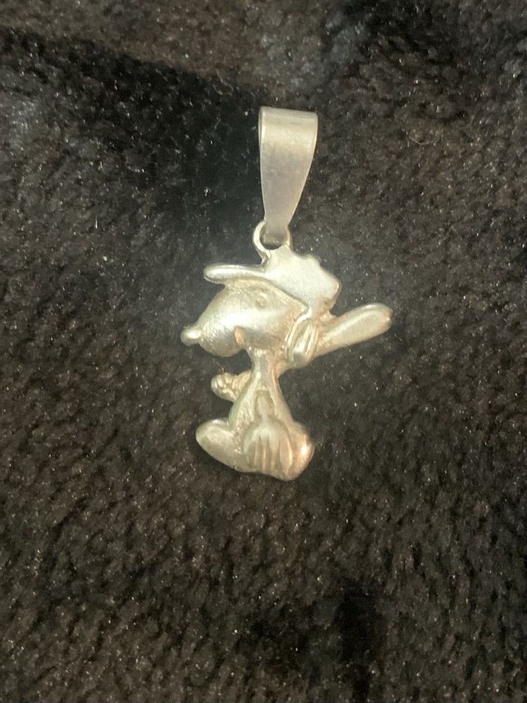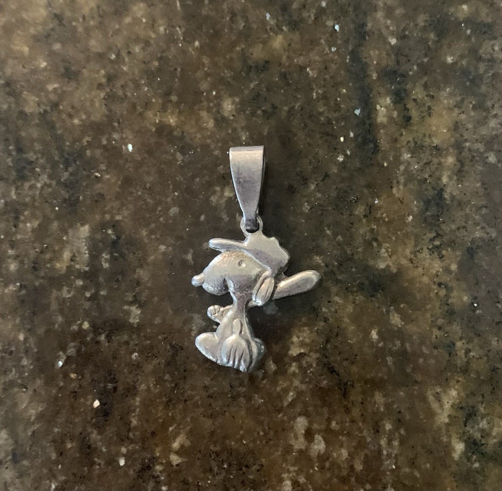 This vintage 925 sterling silver pendant features a playful pose of Snoopy, making it a charming addition to any jewelry collection. The pendant is stackable and has a sleek silver color, perfect for any unisex adult. It is a reproduction of an antique piece and has no gemstones or diamonds. The pendant is made of metal and has an unknown base metal, but its purity is 925. The pendant is perfect for those who love vintage jewelry and appreciate the playful designs of the past.