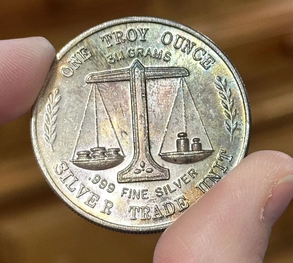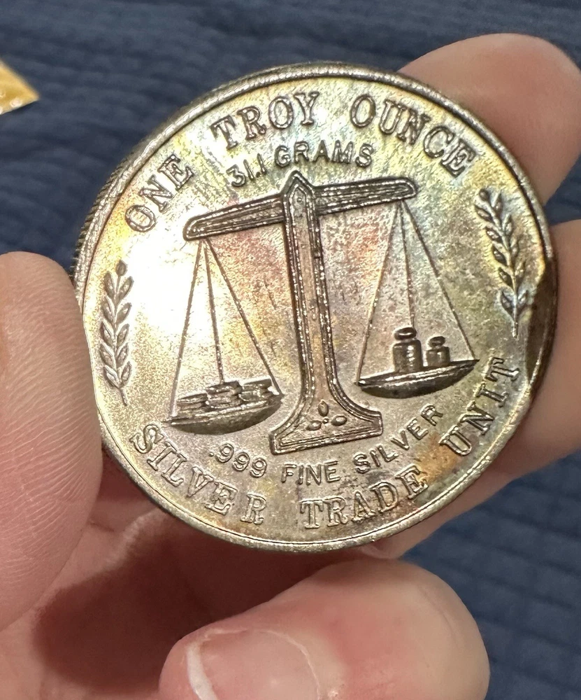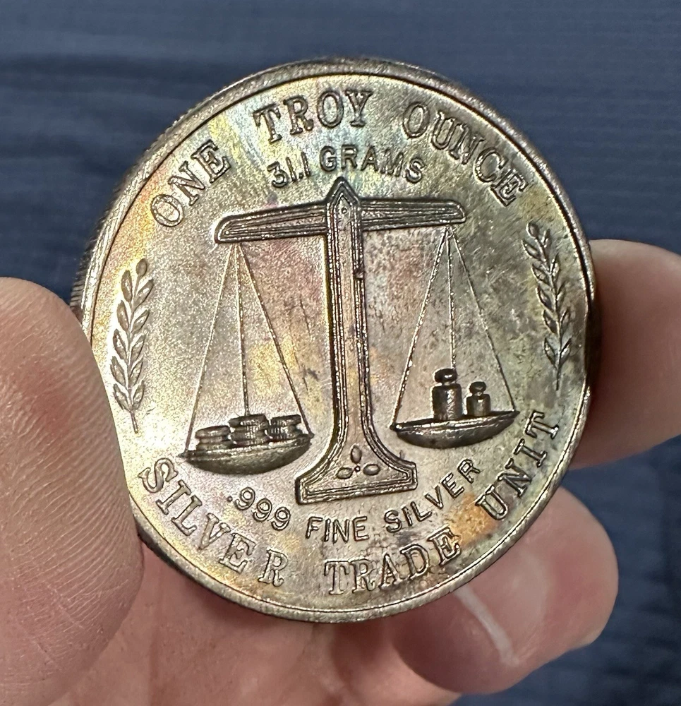 Composition:SilverFineness:0.999Brand/Mint:SILVER TRADE UNITPrecious Metal Content:1 ozShape:RoundCountry/Region of Manufacture:United StatesTotal Precious Metal Content:1 ozPrecious Metal Content per Unit:1 ozYear:Vintage