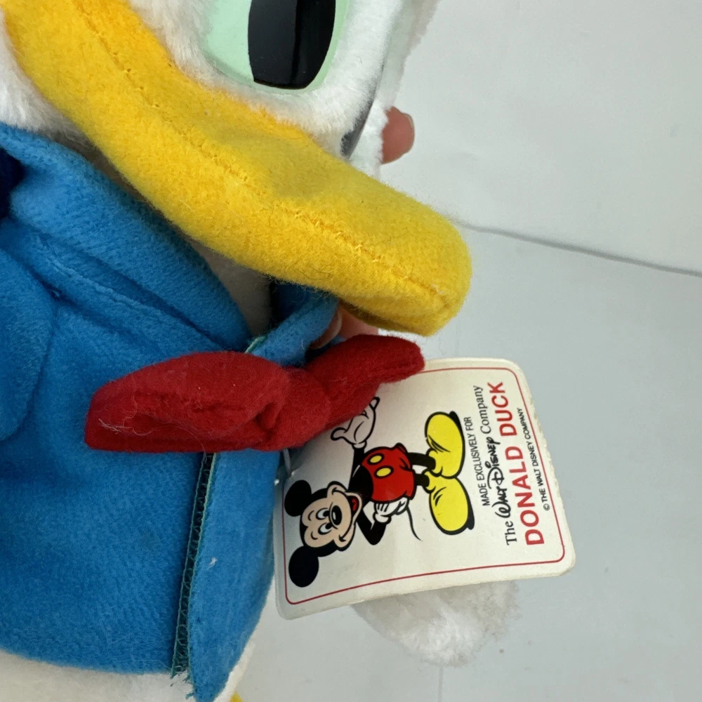 This is a brand new vintage Walt Disney Donald Duck plush toy with tag. The toy was made in Korea, Republic of and features the beloved character from the Disney franchise. It is a collectible item that would make a great addition to any Disneyana collection. The plush toy is contemporary and can be used as a decorative piece or as a toy for children.
