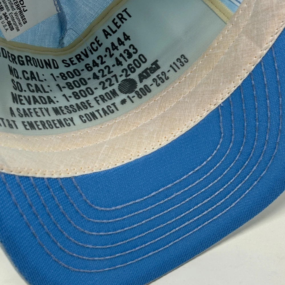 Vintage AT&T Telecommunications Call Before You Dig Baseball Cap Hat Fiber Optics Telephones Nevada California 80s Made In USA Snapback Five Panel A-Frame Blue Will be shipped in a box. CONDITION: In very good used condition. No flaws noticed. Has been cleaned and sanitized. See photos.