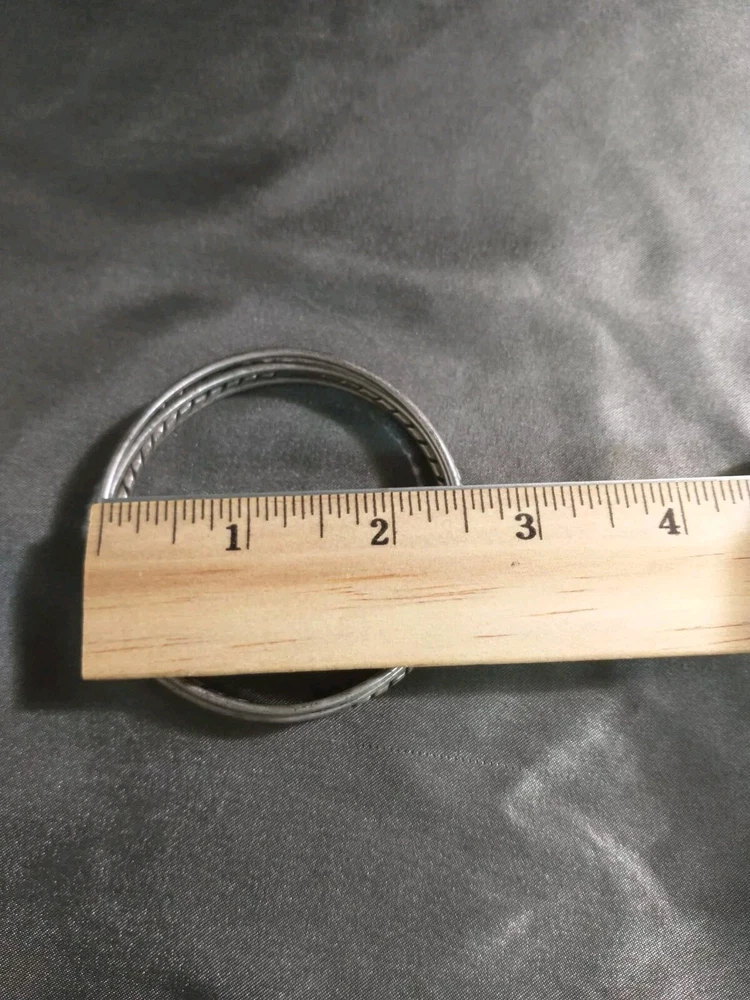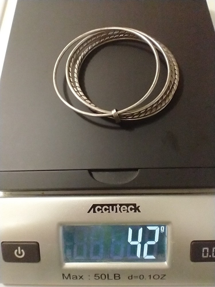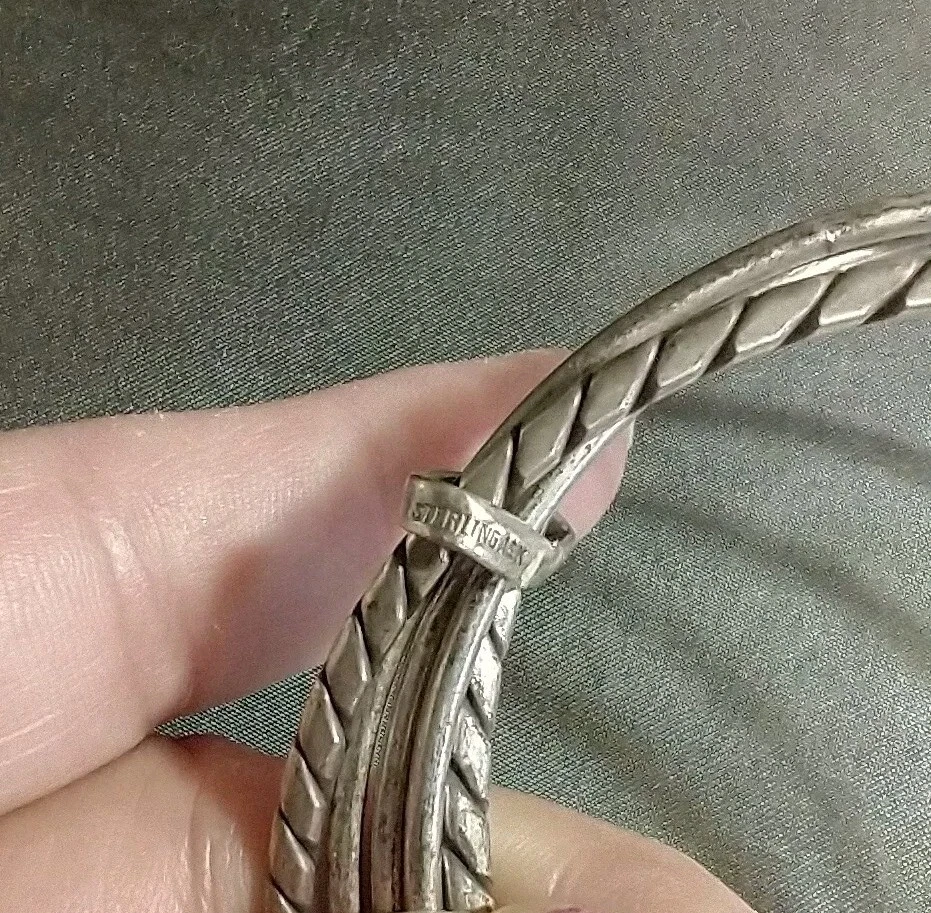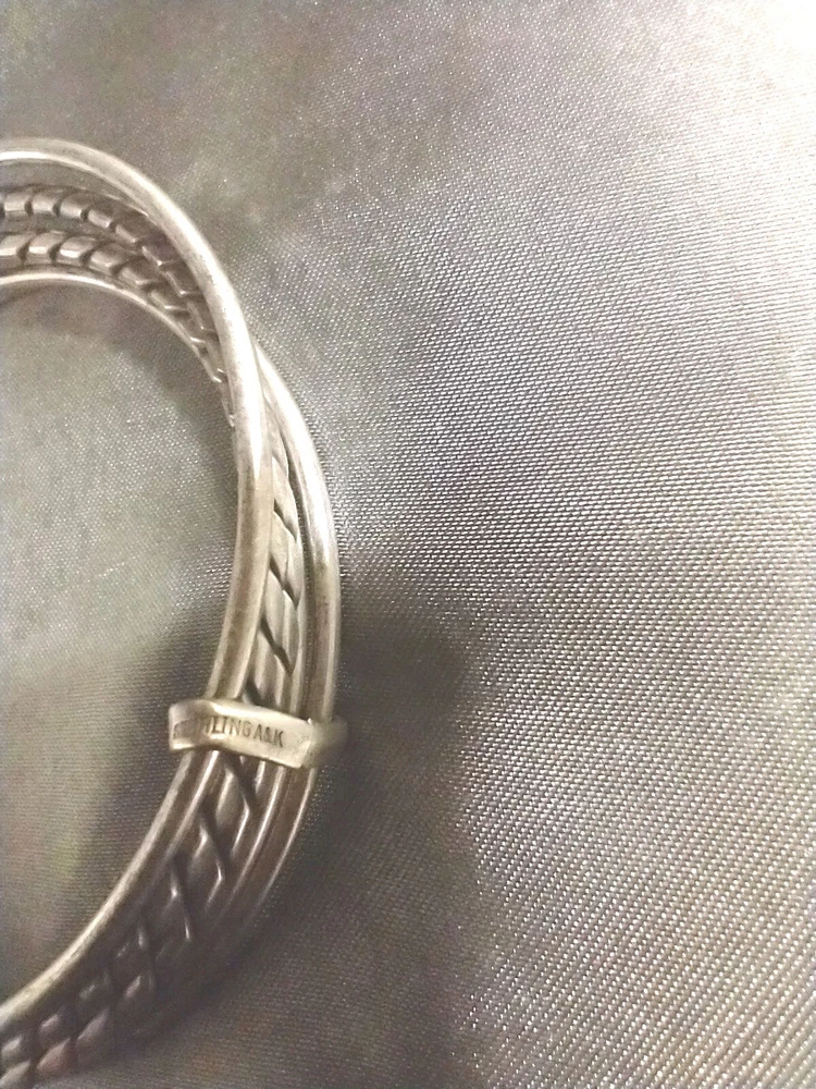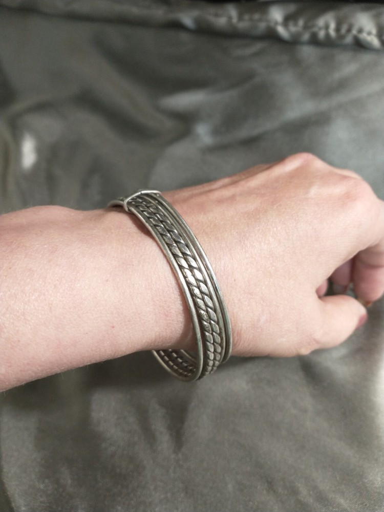 Please see images for size and condition description. SET of 5 Aarre Krogh sterling silver bangle bracelets. Three are solid and two are twisted. The opening is 2.5 inches. My wrist is 6.5 inches. The tag which is stamped STERLING A&K is soldered closed. Aarre Krogh is a Danish silversmith company that operated from 1949-1990 in Randers Denmark. I have not cleaned them, I'll leave that up to the buyer. 42 grams. As is. Thanks! FREE SHIPPING