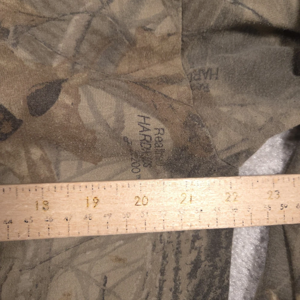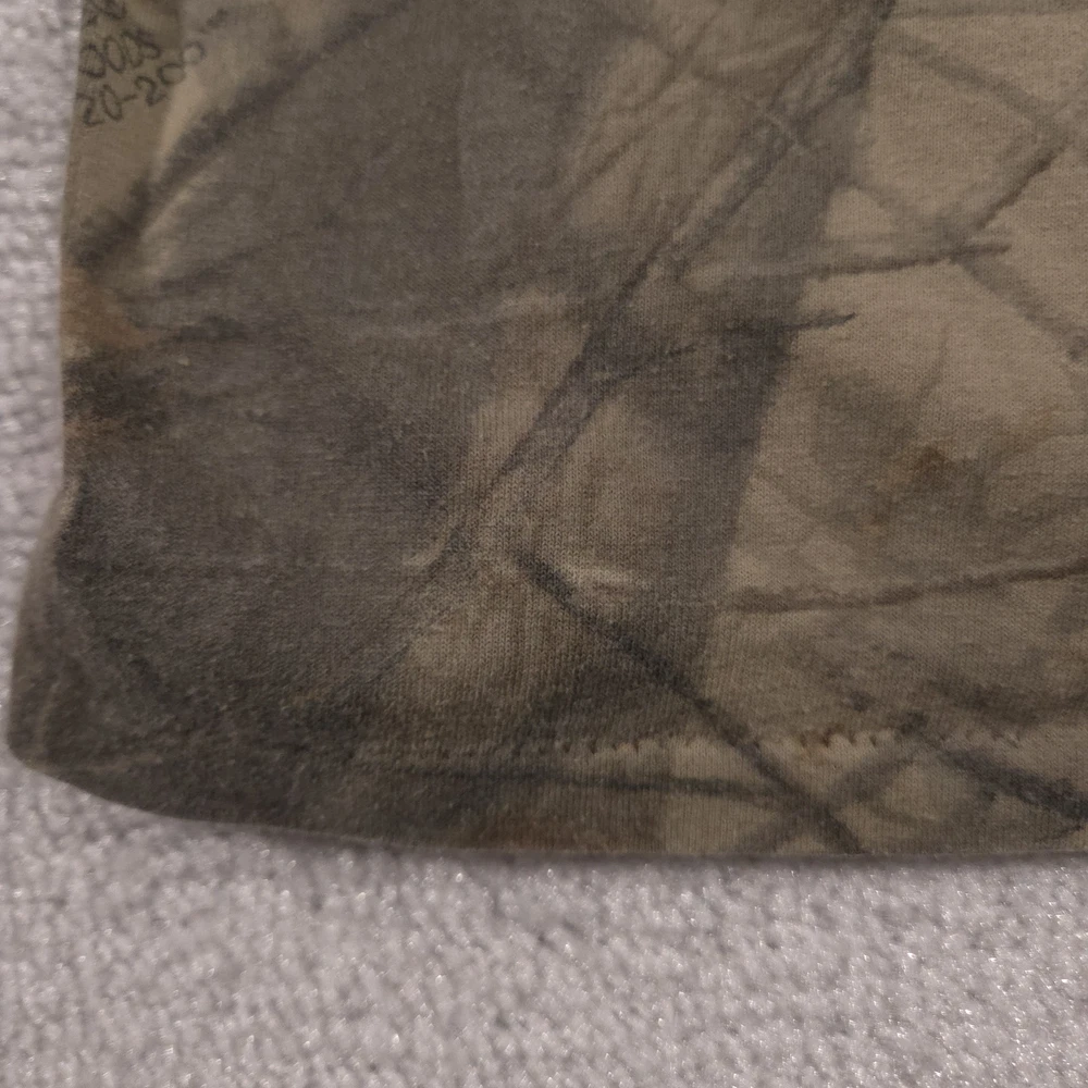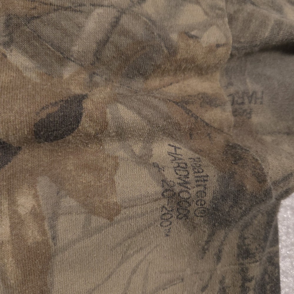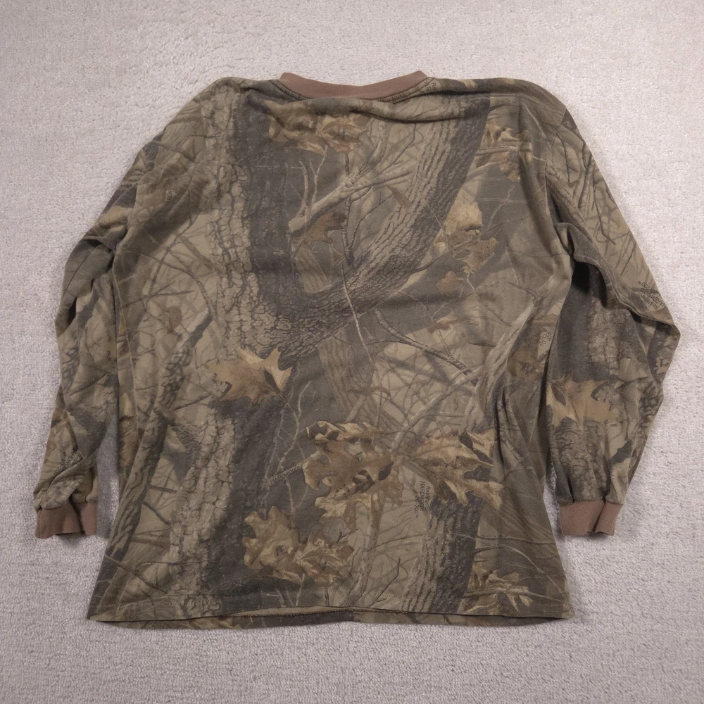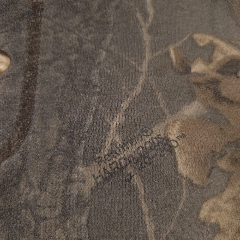 Vintage Ace Sportswear Shirt Mens XL Brown Realtree Camo Henley Long Sleeve USA Pre-owned Ace Sportswear mens henley shirt with fabric clean and structurally intact across front, back, and sleeves. Material shows overall wash wear throughout, light fading to the camo print, and a few small faint spots near the lower front and hem as pictured. Ribbed collar, cuffs, buttons, and hems remain secure and functional; interior neck and care tags present but no original retail tags or packaging included. ΔΆBrand: Ace Sportswear Mens long sleeve henley shirt designed for hunting, outdoor layering, and casual everyday wear. Color and pattern: Brown and olive Realtree HARDWOODS 2000 woodland camouflage featuring tree bark, branches, and oak leaves across the entire garment. Design details: Three-button henley placket, ribbed crew neckline in solid brown, long sleeves with ribbed cuffs, and a straight bottom hem. Fabric and feel: 50/50 poly/cotton knit intended to feel soft, breathable, and comfortable for all-season layering in the field or around town. Fit and sizing: Interior neck tag indicates Mens size XL with a regular T-shirt style fit through the chest and body suitable for wearing over a base layer. Branding and tags: Woven black Ace Sportswear neck label reading ACE SPORTSWEAR XL MADE IN U.S.A. RN 62180 with separate care tag noting 50/50 POLY/COTTON and machine wash instructions; Realtree HARDWOODS 2000 logos printed within the camouflage pattern. Use occasions: Suitable for deer season, turkey hunting, scouting, hiking, camping, or casual outdoor wear during fall, winter, and spring. Condition notes: See the condition section for details. BoxbigD005