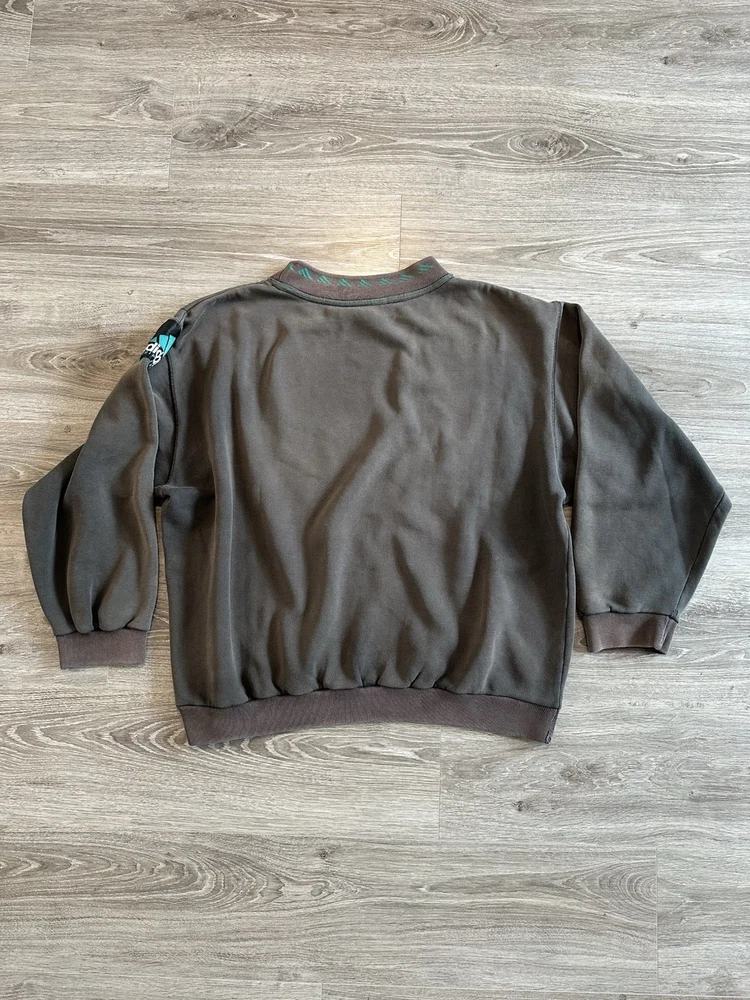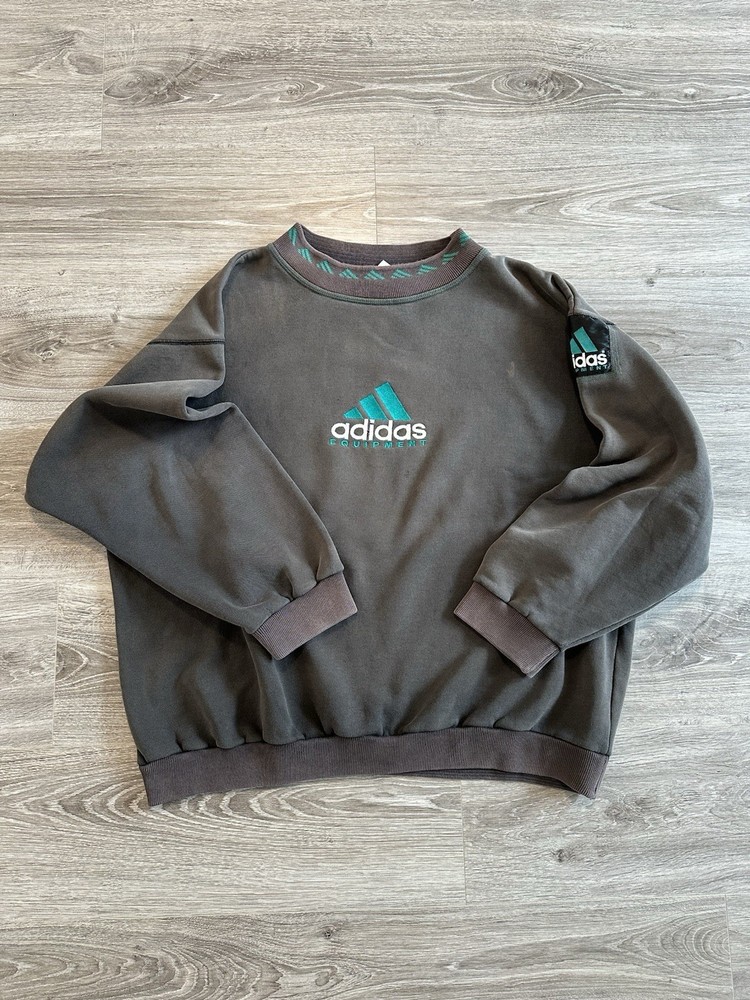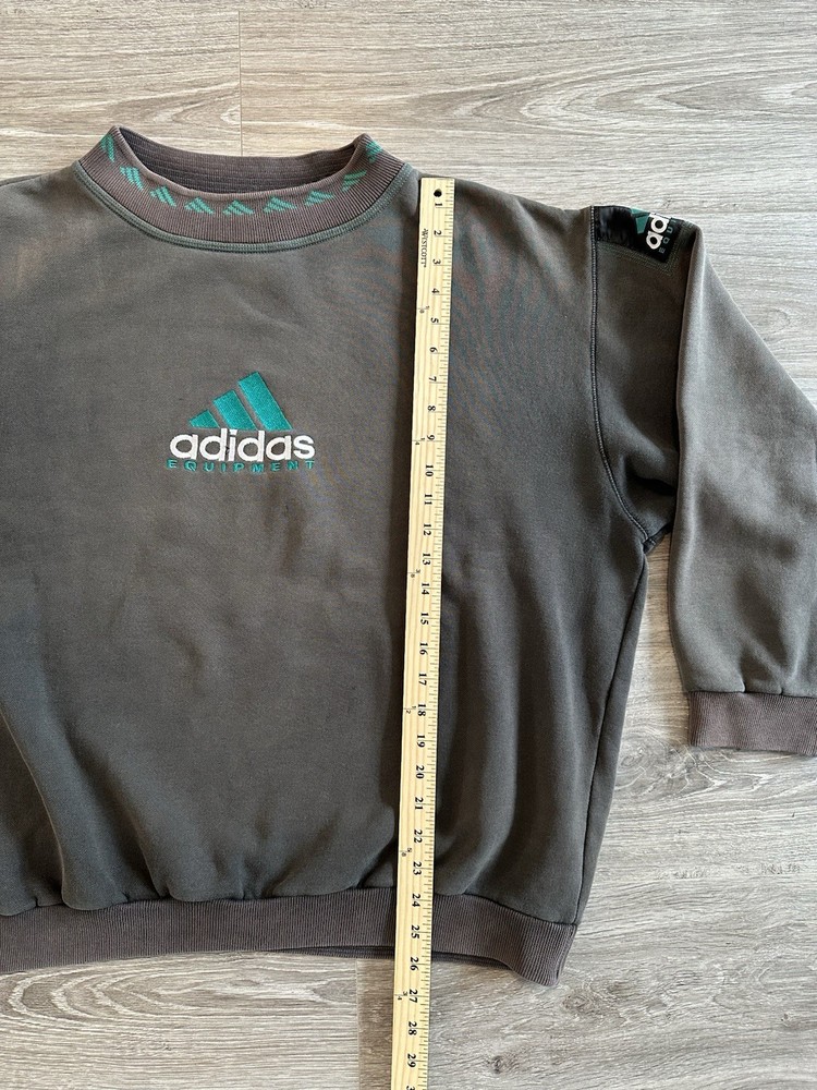 Elevate your wardrobe with this rare vintage Adidas sweatshirt from the 90s. It boasts a timeless black colour, complemented by the iconic embroidered Adidas logo that adds a touch of retro style. Made from a comfortable cotton blend, this pullover is perfect for all seasons and features a classic roundneck and long sleeves for a relaxed fit. Ideal for sports enthusiasts, this sweatshirt is suitable for gym training, football, and soccer. As part of the Adidas Originals product line, it embodies the spirit of the 90s, making it a must-have for fans of the era. Whether you're out for a casual day or gearing up for a game, this embroidered logo sweatshirt is a versatile addition to your activewear collection. Measurements shown in photos.