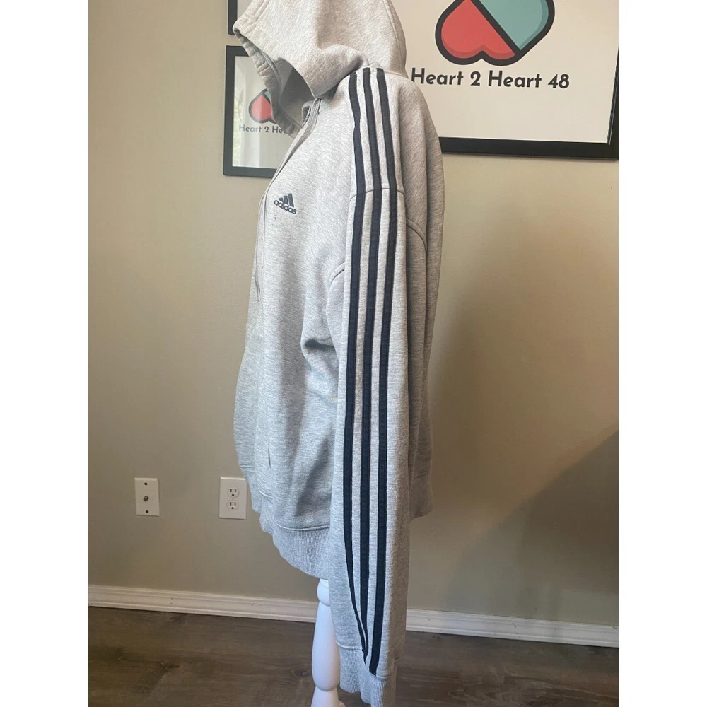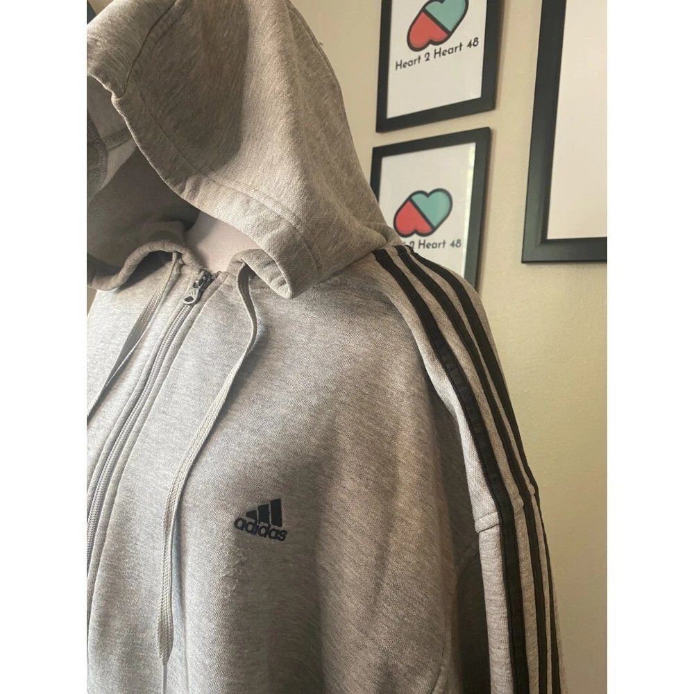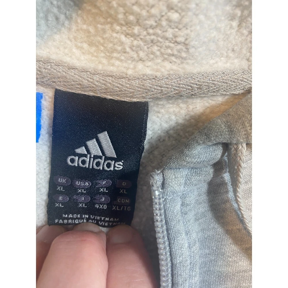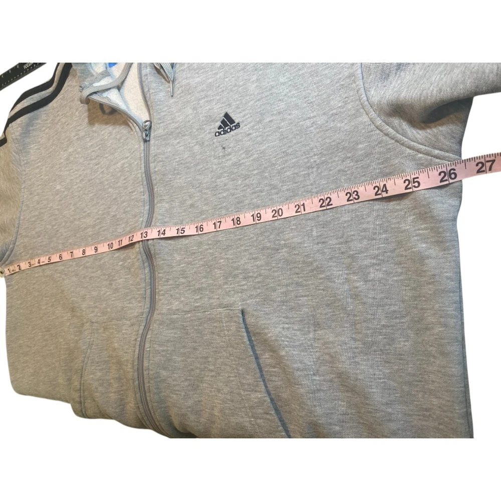 Vintage Adidas Hoodie Full Zip Men's XL Gray Soft Fleece Black 3 Stripes adidas logo Size: XL Color: Gray with Black three adidas stripes Measurements: Chest: 53", Sleeve: 24", Length: 27" (approx.) Material: 70% Cotton and 30% Polyester Excellent Pre-Loved Condition. Actual item Photos. Don't hesitate to contact us before purchasing if you have questions about the item's condition and shipping cost. If you receive an item with a noticeable flaw not shown in the photos, please contact us before leaving feedback. We strive to describe all items thoroughly and accurately. Please ask any questions you have before offering or buying. We will do our best to return your messages within 24 hours. Happy Shopping!