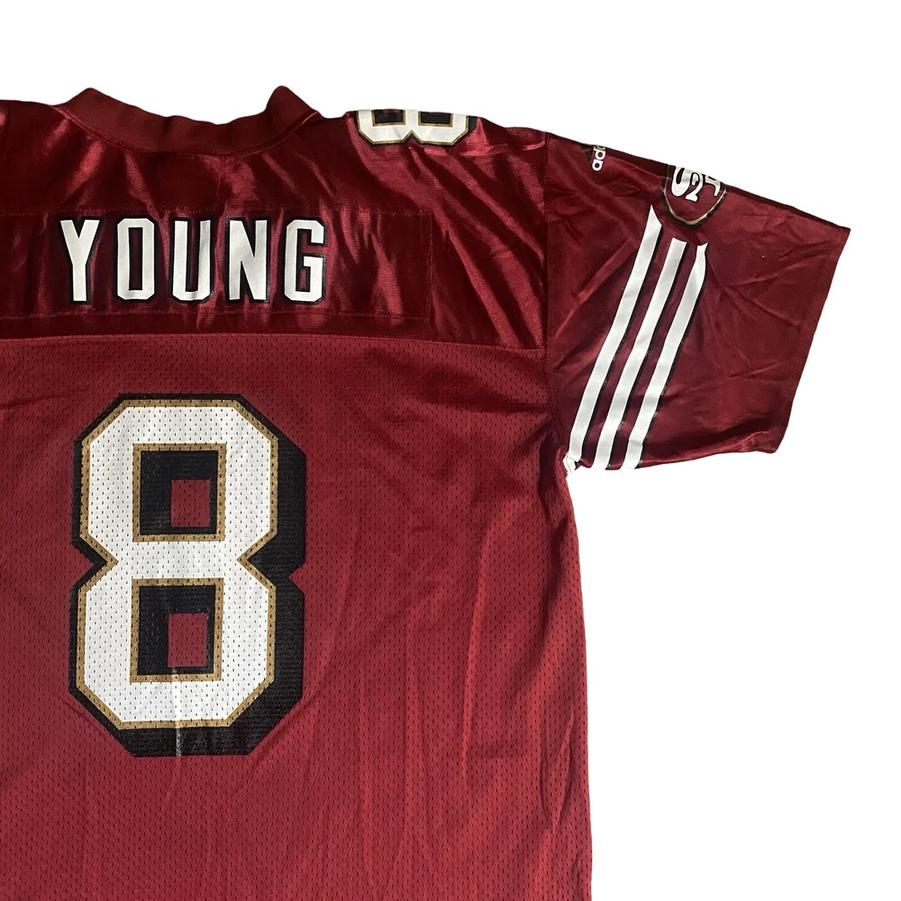 Here’s A Really Cool Vintage Adidas San Francisco 49ers Steve Young Jersey In Size XL. It’s In Excellent Condition & Measures 25” Pit To Pit 32” Top To Bottom. Please Message Us With Any Questions You May Have & We’ll Be Sure To Respond Swiftly. Have A Great Day!