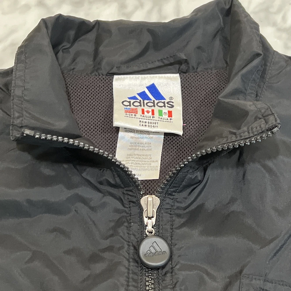 Vintage Adidas Windbreaker Small Black 3 Stripes Vented Logo Front & Back Washed and clean per eBay policy