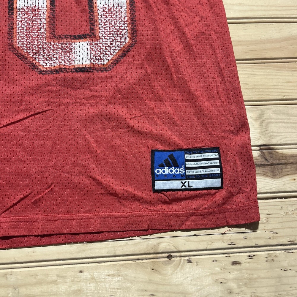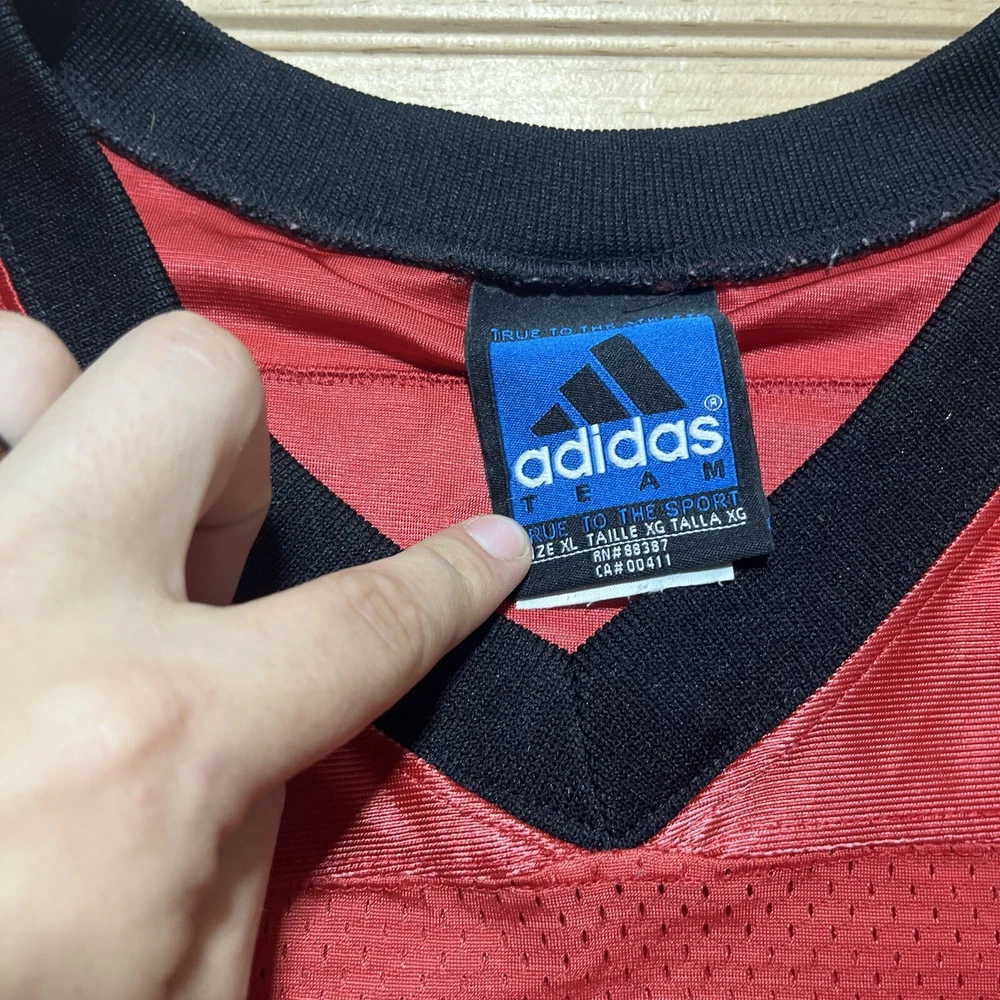 Material: 100% Polyester Style: Jersey Accents: Logo Size: XL Fit: Athletic Color: Red Type: T-Shirt Performance/Activity: Football, Gym & Training, Running & Jogging Vintage: Yes Theme: 90s, Sports Department: Men Sleeve Length: Short Sleeve MPN: 3442 Brand: adidas Occasion: Activewear Size Type: Regular Pattern: Graphic Print Closure: Pullover
