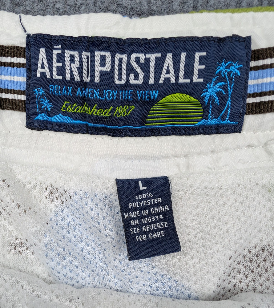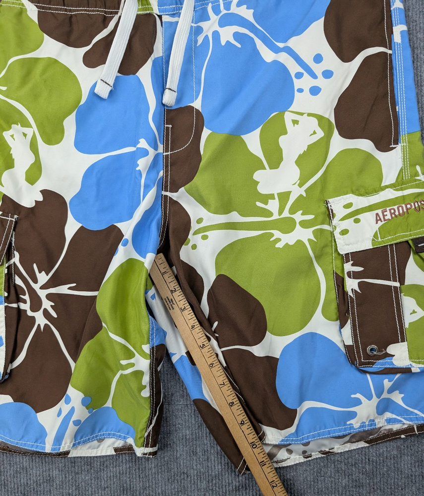 Brand: Aeropostale Department: Mens Type: Swim Trunks Size: Large Color: Multicolor Pattern: Floral Material: Polyester Lining Material: Mesh Style: Board Shorts Closure: Drawstring Features: Lined, Pockets Occasion: Swim, Beach, Vacation Season: Spring, Summer Country/Region of Manufacture: China Pre-owned in good condition with normal signs of wear from use. Interior lining has been cut. Please see all photos for exact condition and details.