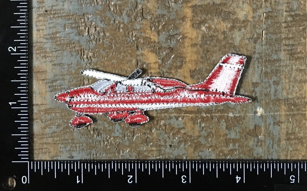 Vintage Aircraft Aviation Embroidered Iron-On Patch Red White Style