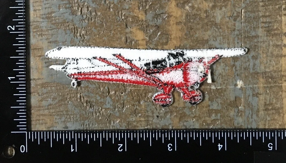 Vintage Airplane Aircraft Aviation Embroidered Iron-On Patch Red/White
