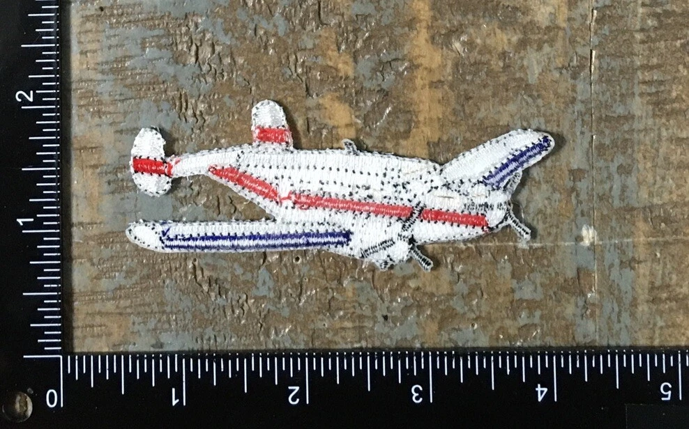 Vintage Airplane Aircraft Aviation Embroidered Iron-On Patch White/Blue/Red