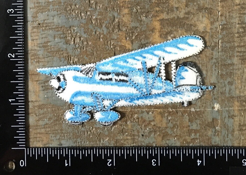 Vintage Airplane Aviation Embroidered Iron-On Patch in Light Blue and White