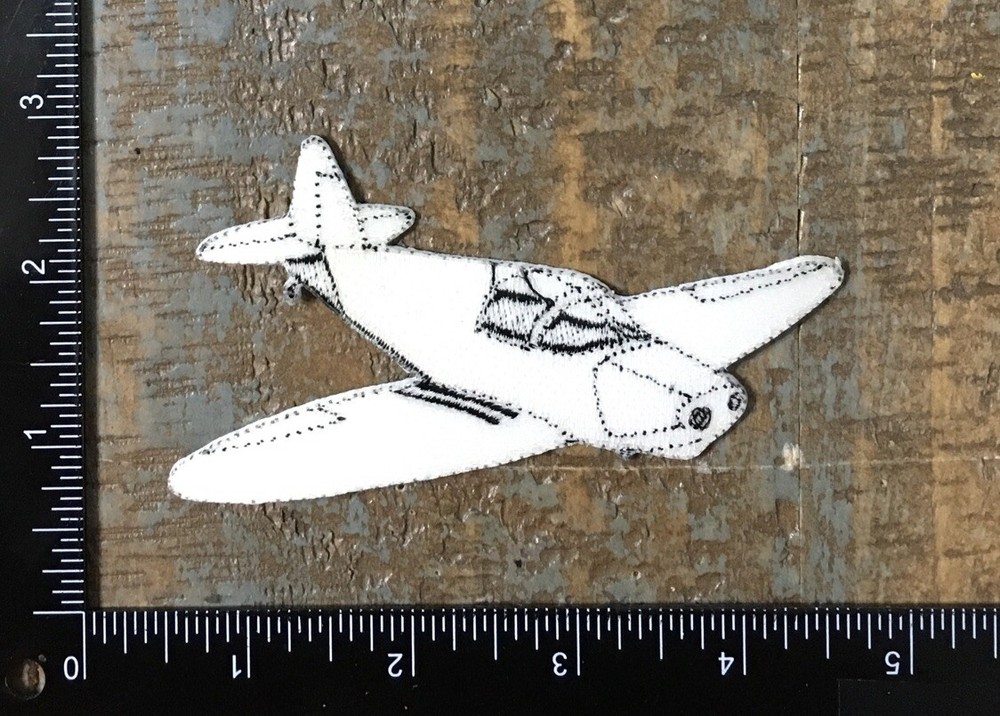 Vintage Airplane Aviation Embroidered Iron-On Patch in White and Black