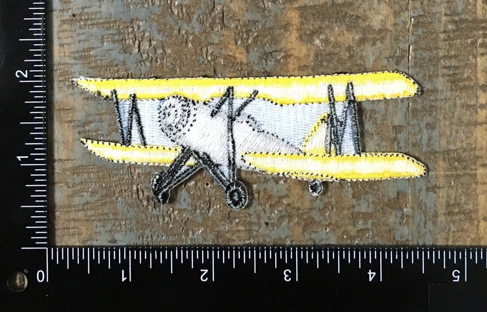 Vintage Airplane Aviation Embroidered Iron-On Patch in Yellow and Blue