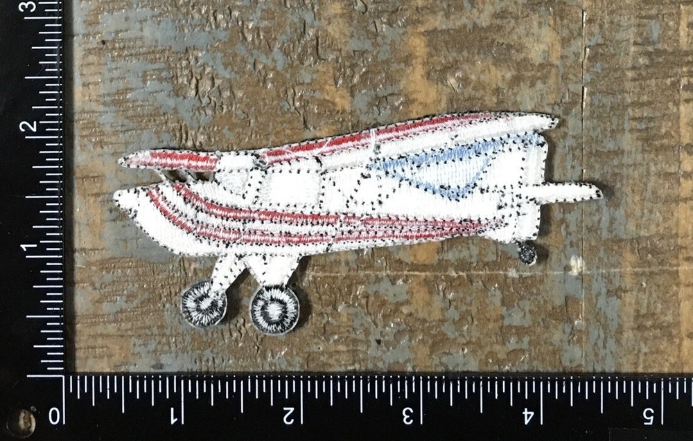Vintage Airplane Aviation Embroidered Iron-On White Red Patch