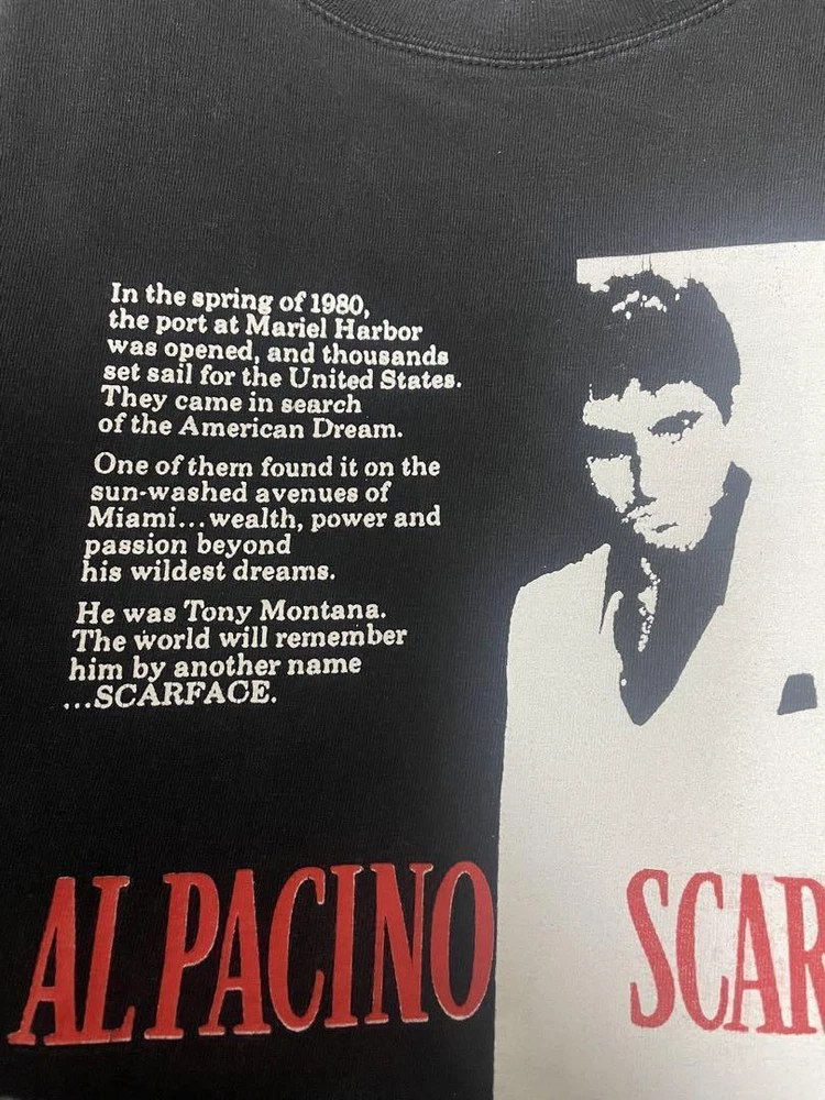 Love this vintage Scarface tee! The faded print gives it a cool, worn-in look while the fabric stays soft and comfy. Fits true to XL with a relaxed fit—perfect for casual wear. No major flaws, just that awesome retro vibe. A must-have for movie fans and streetwear lovers!
