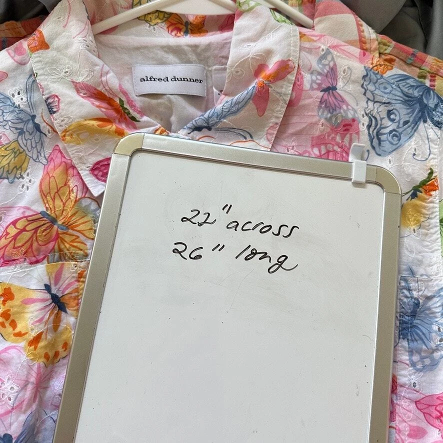 Alfred Dunner Vintage y2k Butterfly Jacket Shacket Button Front Long Sleeve Pastel Sz 16 Size: Women's Size 16 Approx. measurements: 22" across (pit to pit), 26" long (shoulder to hem) Condition: Pre-loved and in gently used condition. Light wear. no stains, rips, or holes. - see all pics for any wear/condition - From Smoke Free Environment - Item shown the exact item you will receive. ** Be sure to Follow us, We post several shoes / items often, and offer discounts when you bundle. **SHIPS FROM CHICAGO, ILLINOIS :) vintage, y2k, pastel, cottage, cottage core, casual, grandma, grandmacore, grandma chic, butterfly