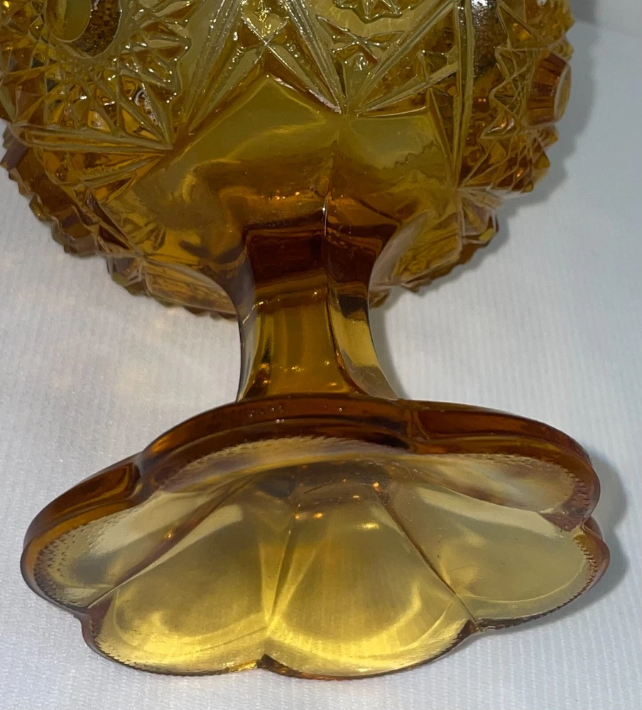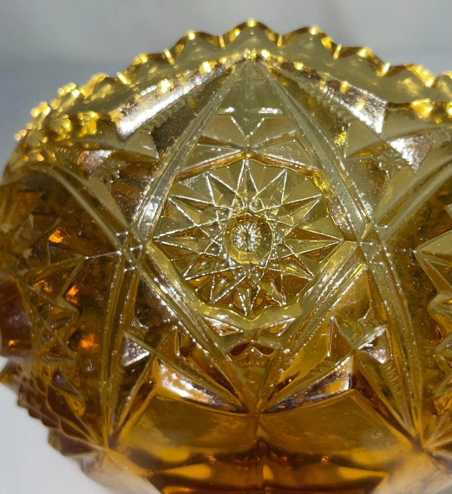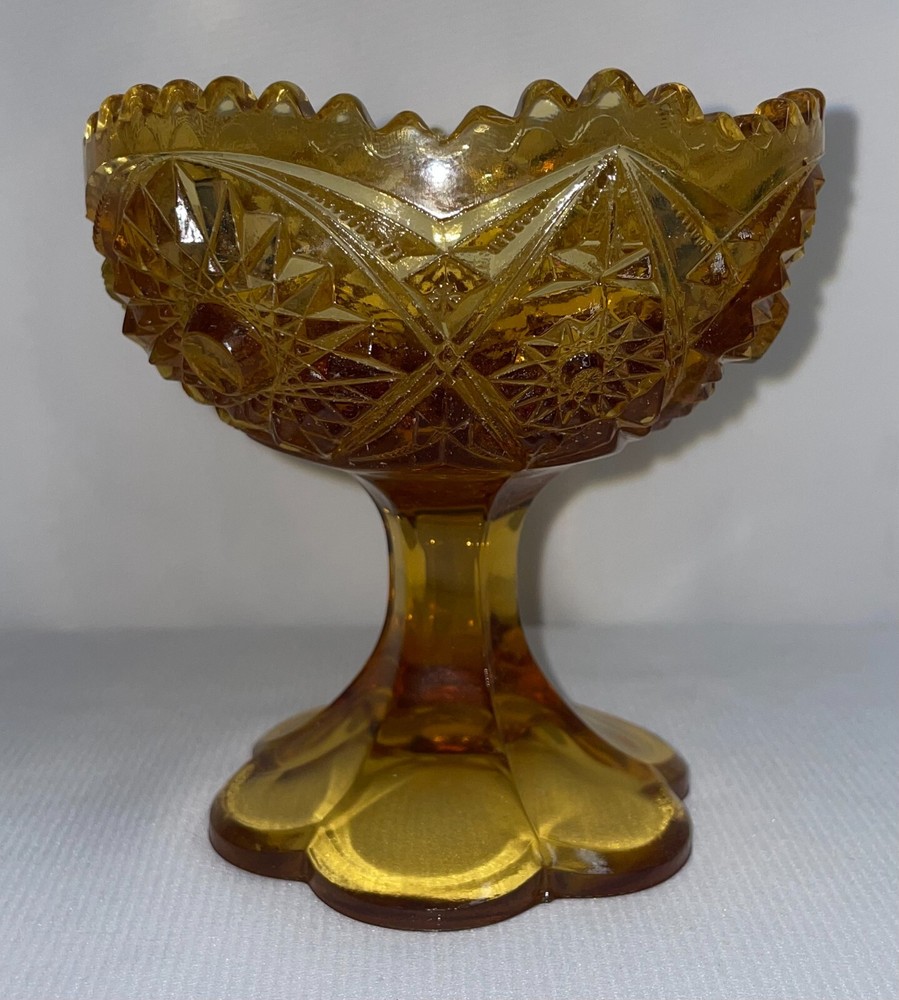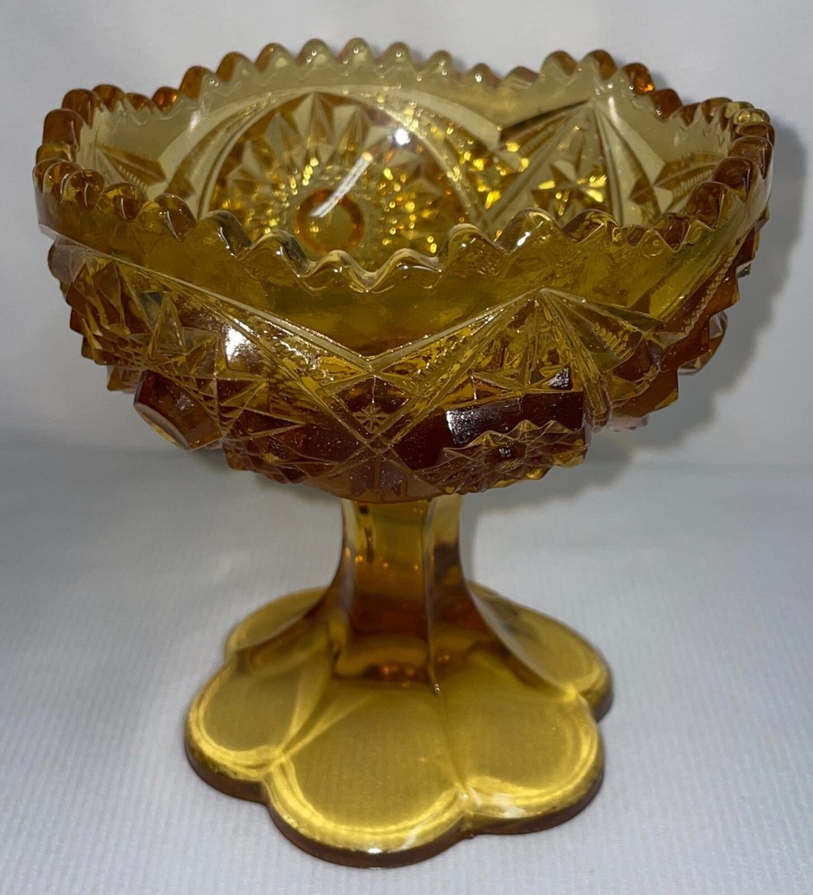 Vtg Wheaton Kimble Amber Glass Sawtooth Pedestal Candy Dish 5 Inches High Pre-owned, Very good condition, no chips or cracks. Has a sawtooth rim measures 5 inches across opening at top. Measures 5 inches high with a 4 inch base edge to edge. A beautiful button and sunburst pattern. ATTENTION REGARDING SHIPPING !! Shipping costs are expensive. Here is an offer that is hard to refuse. If you buy 2 or more items totaling $50 or more , I will handle the shipping cost (ground) anywhere in the continental United States. The items cannot be listed as having to be shipped alone due to SPECIAL PACKING NEEDS . eBay does not adjust the shipping cost removal from the invoice automatically. I can do it on the final invoice after you have the items in your shopping basket, before you pay. If eBay forces payment before that is done, you will receive a refund of shipping cost made before your package is shipped within the first business day following the transaction. The free shipping offer does not apply to Priority or Expedited shipping, although we can discuss a fair reduction in shipping cost should you desire the shipping upgrade. LOOKING FOR LESS EXPENSIVE SHIPPING? Click on "See details" next to Expedited Shipping Fee above to see other shipping options. eBay calculates the shipping fee based on package size, weight and type of shipping you select. SOME ITEMS CANNOT BE COMBINED WITH OTHER ITEMS DUE TO UNIQUE PACKAGING CHARACTERISTICS. THERE WILL BE A NOTE (here) IN THE LISTING WHEN COMBINED SHIPPING CANNOT BE USED. SAVE SHIPPING COSTS! – USE COMBINED SHIPPING Shipping costs are high. The best way to save money on shipping costs is through combined shipping,… purchasing more than 1 item and having them shipped together. The cost per item drops substantially. To do this you MUST NOT pay for items until after the combined shipping cost has been calculated on the invoice. If you pay before this has been done you will end up paying the individual shipping cost for each item, and I am unable to issue refunds for shipping overpayments when this occurs because eBay does not refund the fees they charge me on the refunded amount.