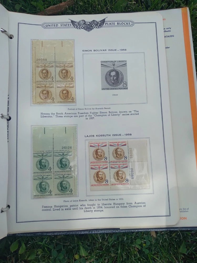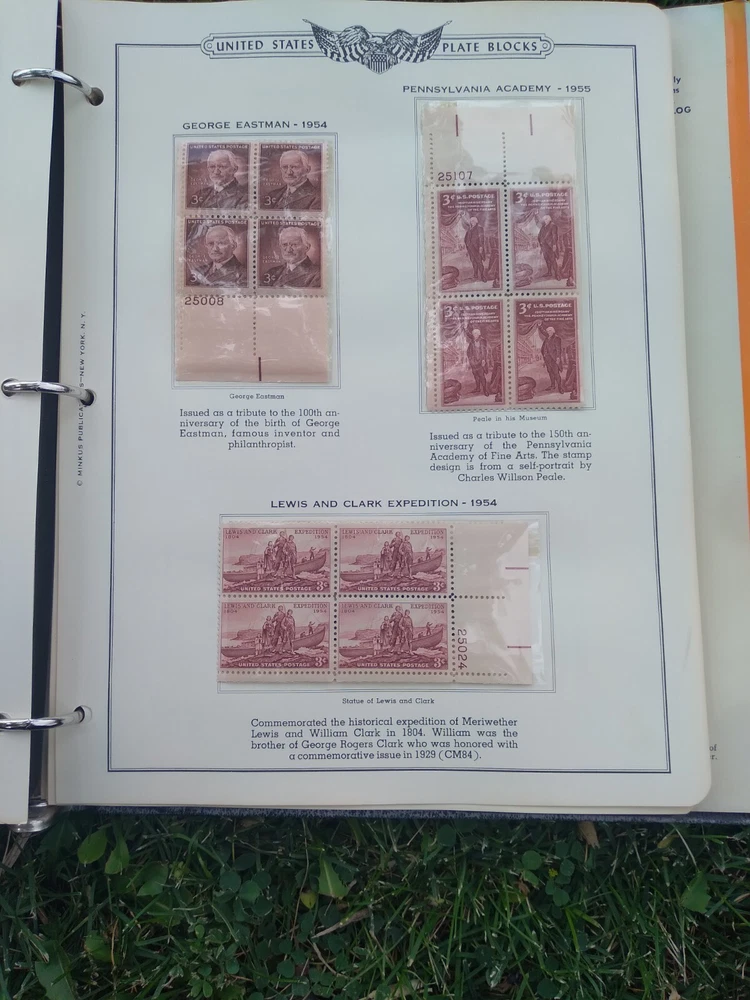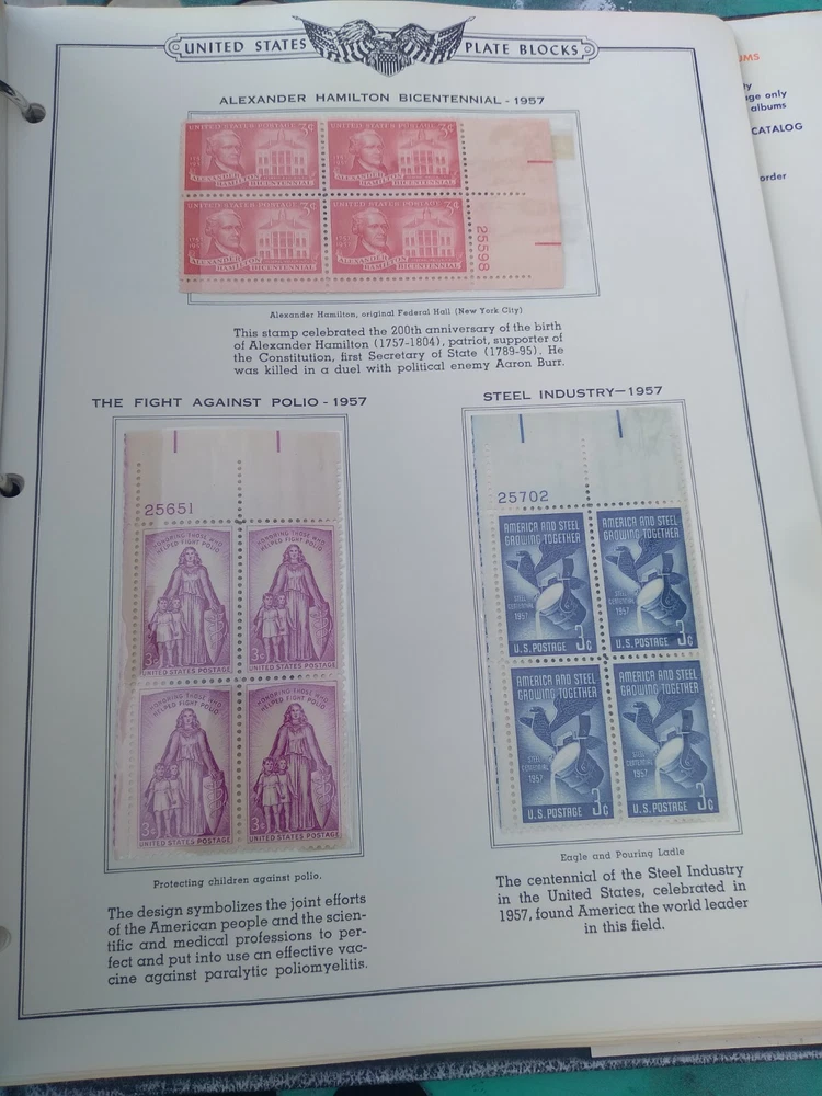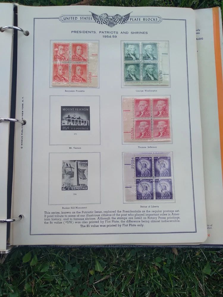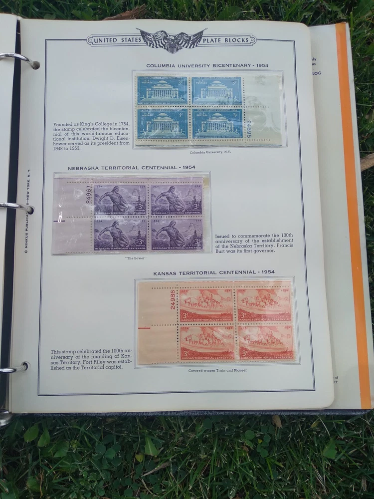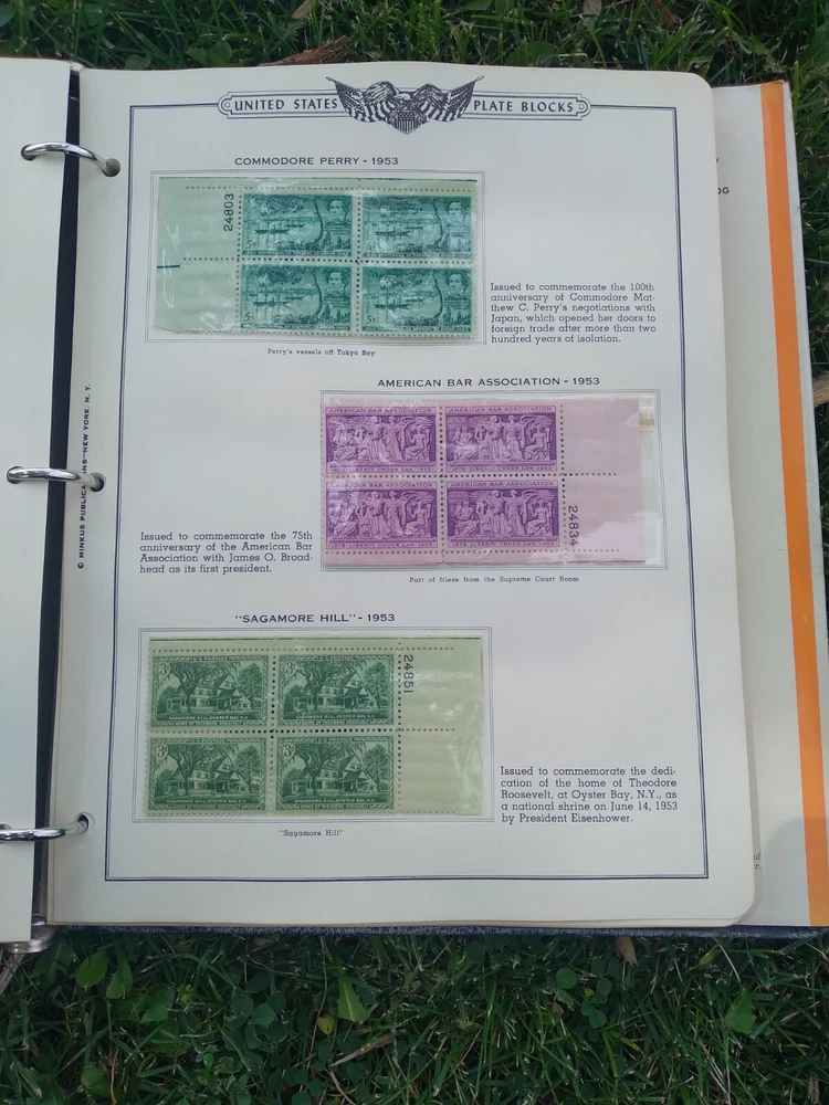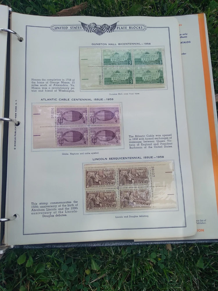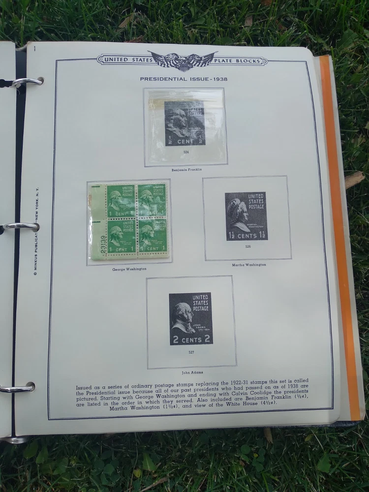 Stamp Collectors Book for American Stamps. Volume II Plate Blocks. All plate blocks come with 4 stamps each and the end corner. Compete Hinged collectible un-used stamps About 75% FULL with all un-used stamps. Going from 1 cent up to about 8 cents Most are from the 1940-1950s. All American Stamps. Comes with a complete set of taken over countries from World War II (2) including KOREA and all European Countries. Each page includes a detailed description about each collectible stamp plate block. All plate blocks are covered in clear plastic and in MINT or very fine condition. Un-used. I didn't count how many exact plate block stamp 4 stamps that are completed in the book. 75% is an estimate. All photos show the stamps that will be included in the book. It just doesn't show all stamps included in the book. Most pages come with 2-4 complete plate block 4 stamps per page. Gently used vintage condition. Book itself has some wear due to the age of the book. Has a tear on the back side of the book cover. All stamps are mint and in plastic covered plate blocks. All stamps have never been used. Stamp collector book is about 75% full of completed plate blocks. See photos for damage to cover. Photos show exact book and not all stamps included. Too many stamps to take pictures of all of them. Not willing to break-up or part out. Book is about 75% complete, with the most missing at the earlier years. SHIPPING & HANDLING: Handing is one day after payment has been received. Shipping will be Ground Advantage and takes about 5-7 days depending on your location. Tracking will be provided. Be sure to check out my vintage jewelry and vintage collectibles items as I would be more than willing to combine shipping. For all jewelry under 5 oz, the 2nd shipping cost will be refunded. If you buy more than 3 jewelry items, the 3rd piece of jewelry will be $1.00 extra shipping. For all other items for combined shipping, I will charge exact shipping costs and refund the difference after I have shipped your items. REFUNDS: If the item purchased is not as described when received I will provide a refund after I receive the item back. Items purchased that you would like to return for “not as described” will need to be returned within 14 days. If you think you are entitled to a “refund” and have received the item at a discount and not market (re-sale) value, I will DEMAND you send the item back for a full refund. This will ensure that I can resell the item at full market value vs what you paid. If you mistakenly purchased an item and I have already printed the shipping label, I will only refund the purchase price. You can cancel your item purchased (within the first 24 hours) for a full refund as long as I have not shipped the item. If I have shipped and printed the label, I will not refund your shipping costs. QUESTIONS: Please message me and I will respond within 24 hours.
