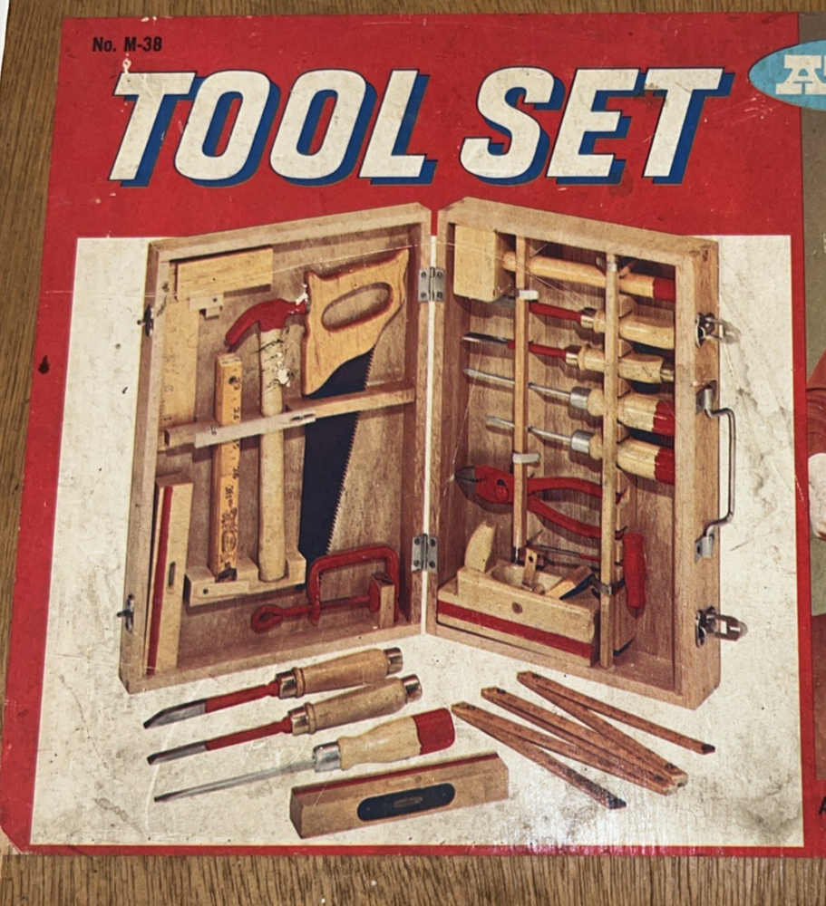 Vintage American Toy & Furniture Co. Tool Set Wooden Case + Tools (no hammer)