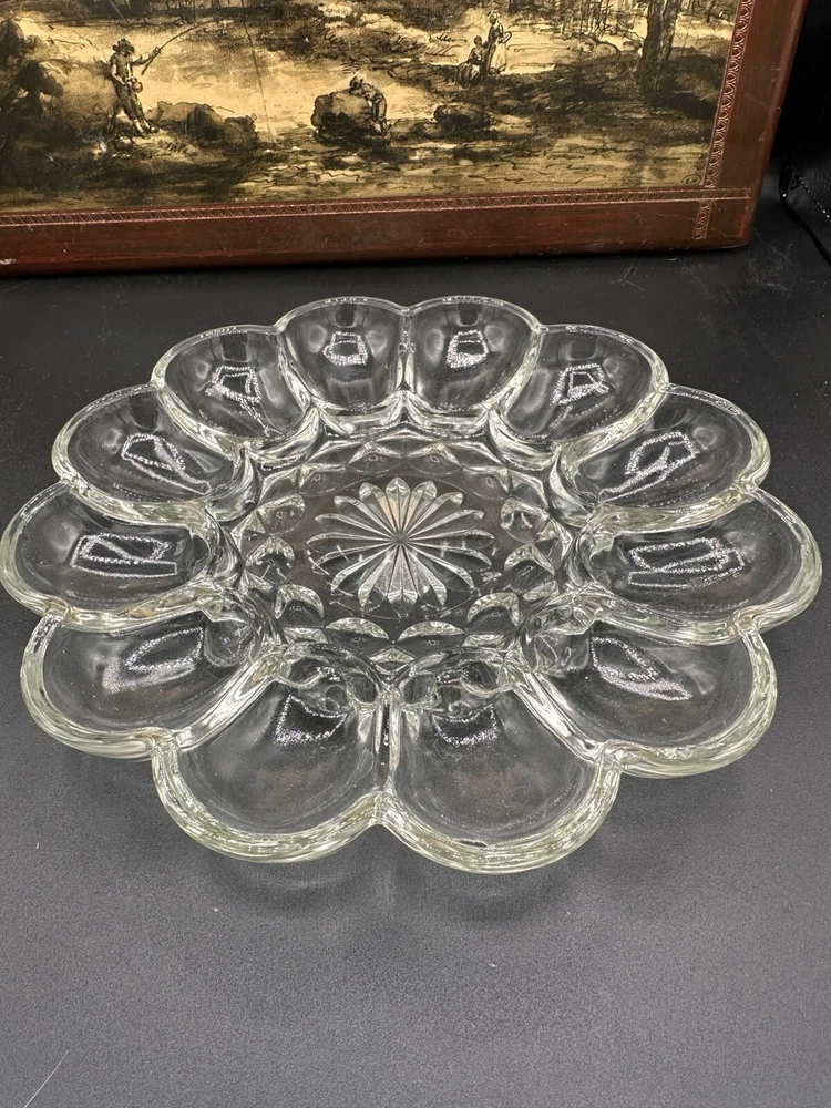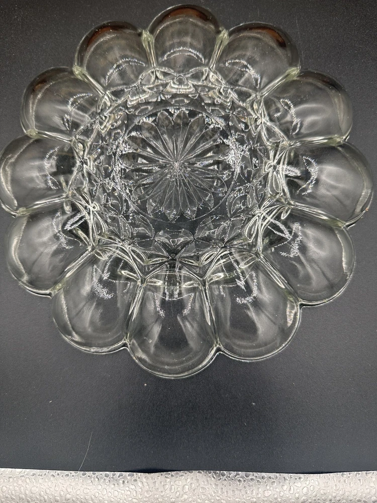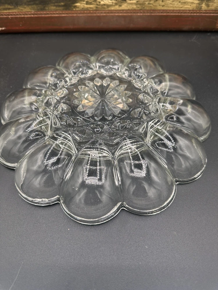 Vintage Anchor Hocking "Fairfield" Pattern Deviled Egg Plate Dish 10" D Clear. Condition is Used. Shipped with USPS Ground Advantage.