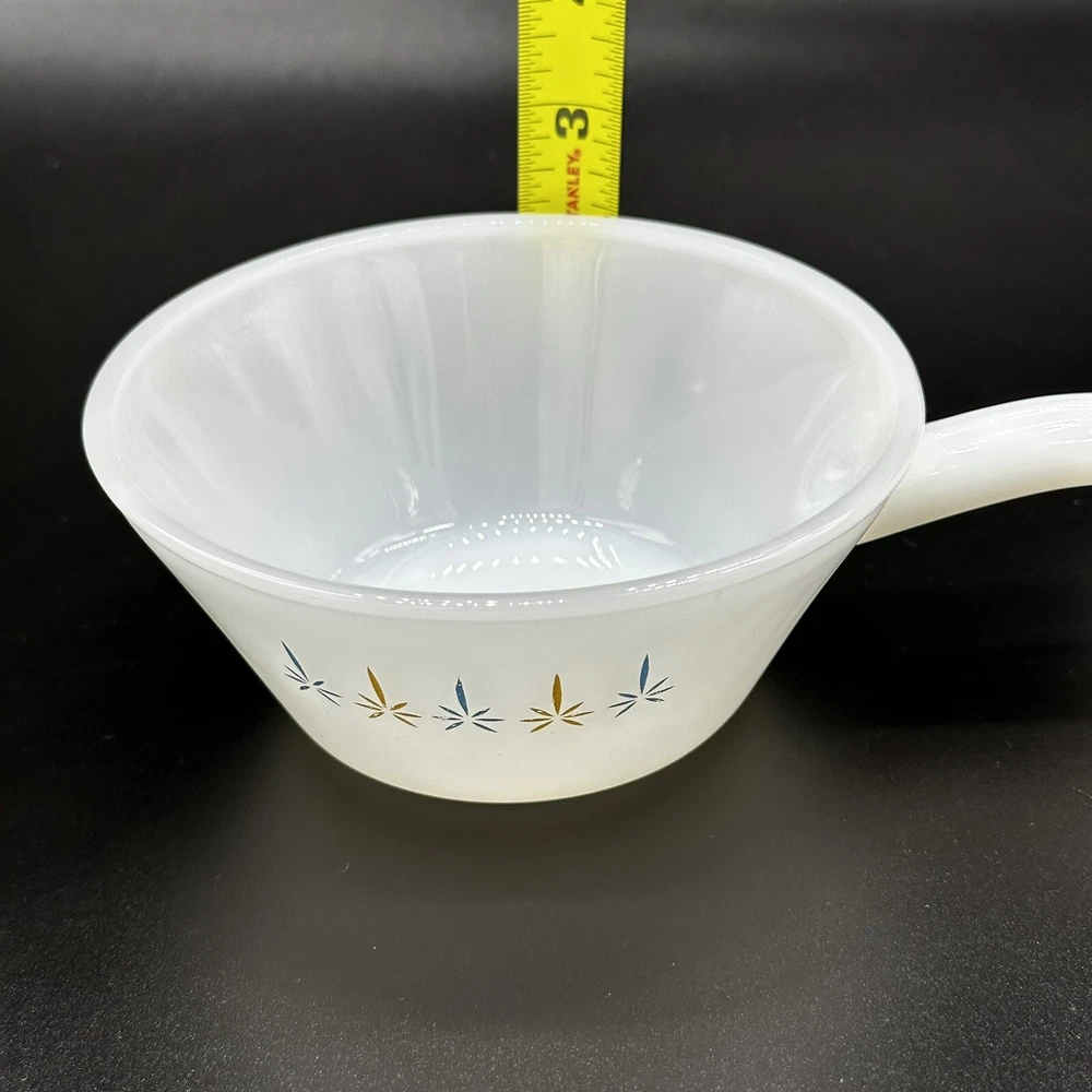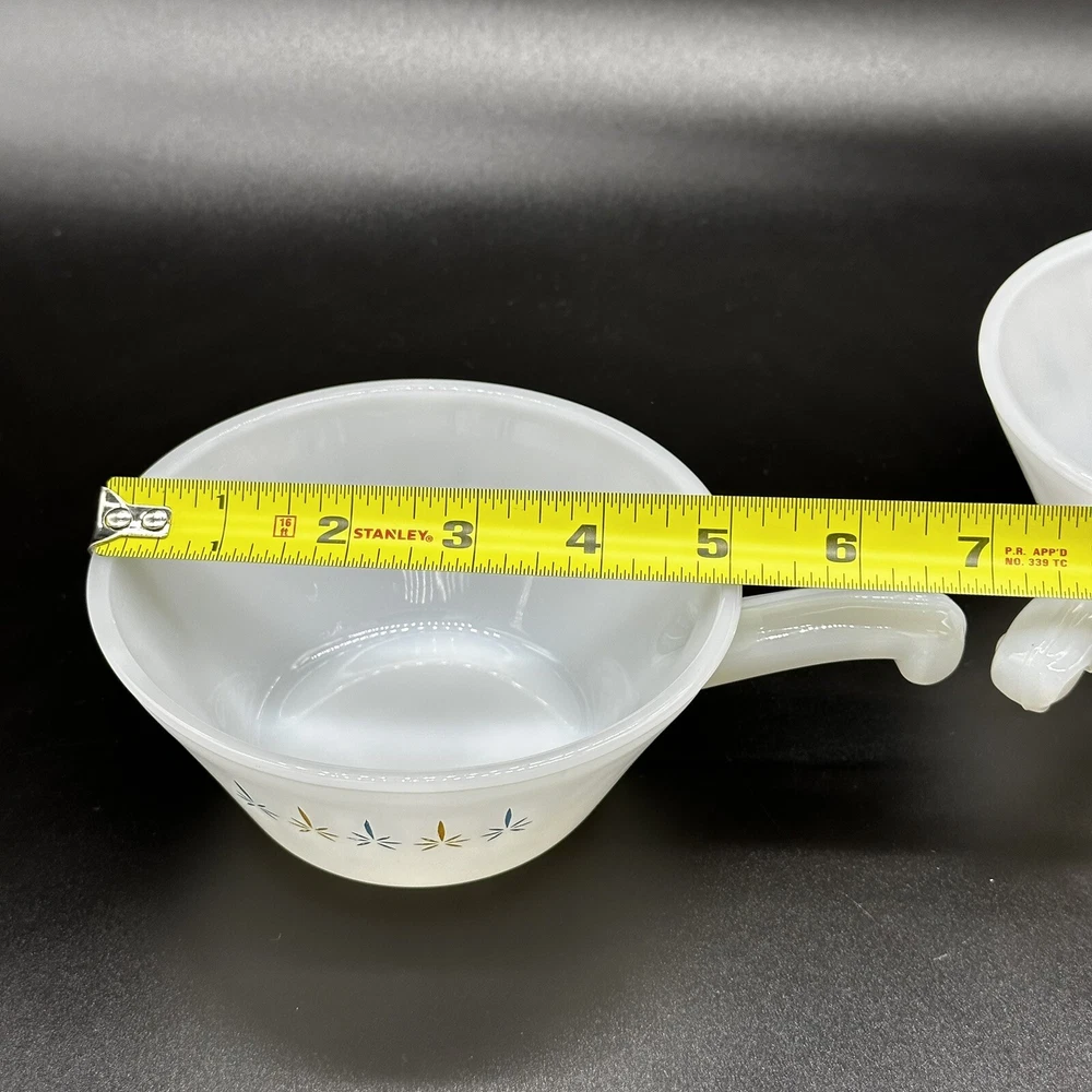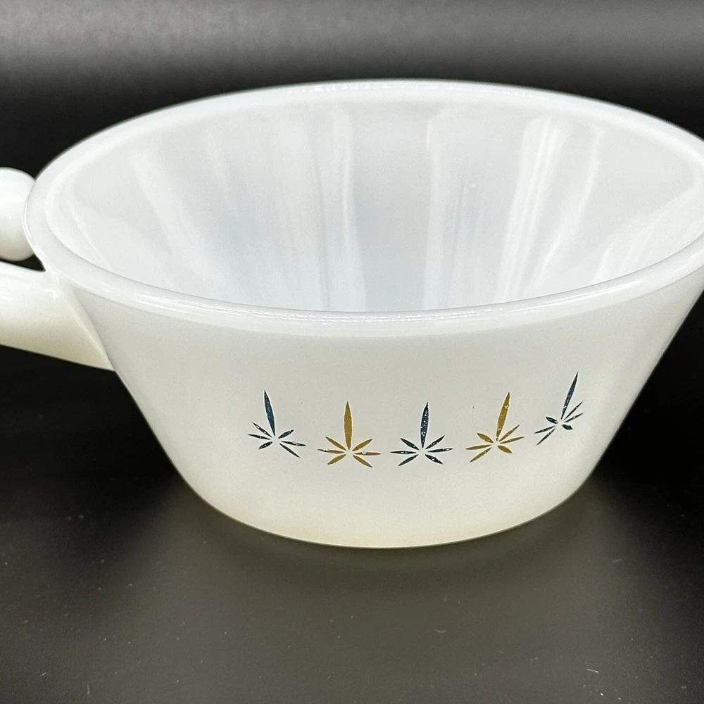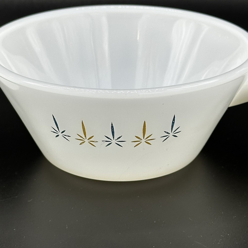 2 VTG Anchor Hocking Fire-King Ware Candle Glow Atomic Soup Bowls Handle Kitschy Great vintage condition with some mild fade Set of 2