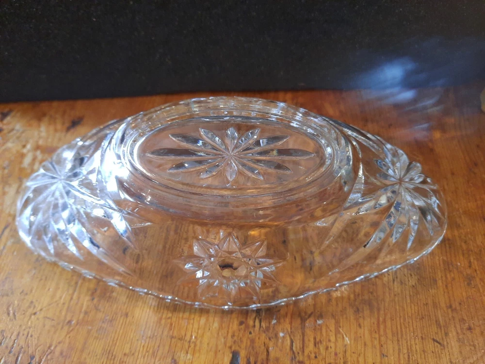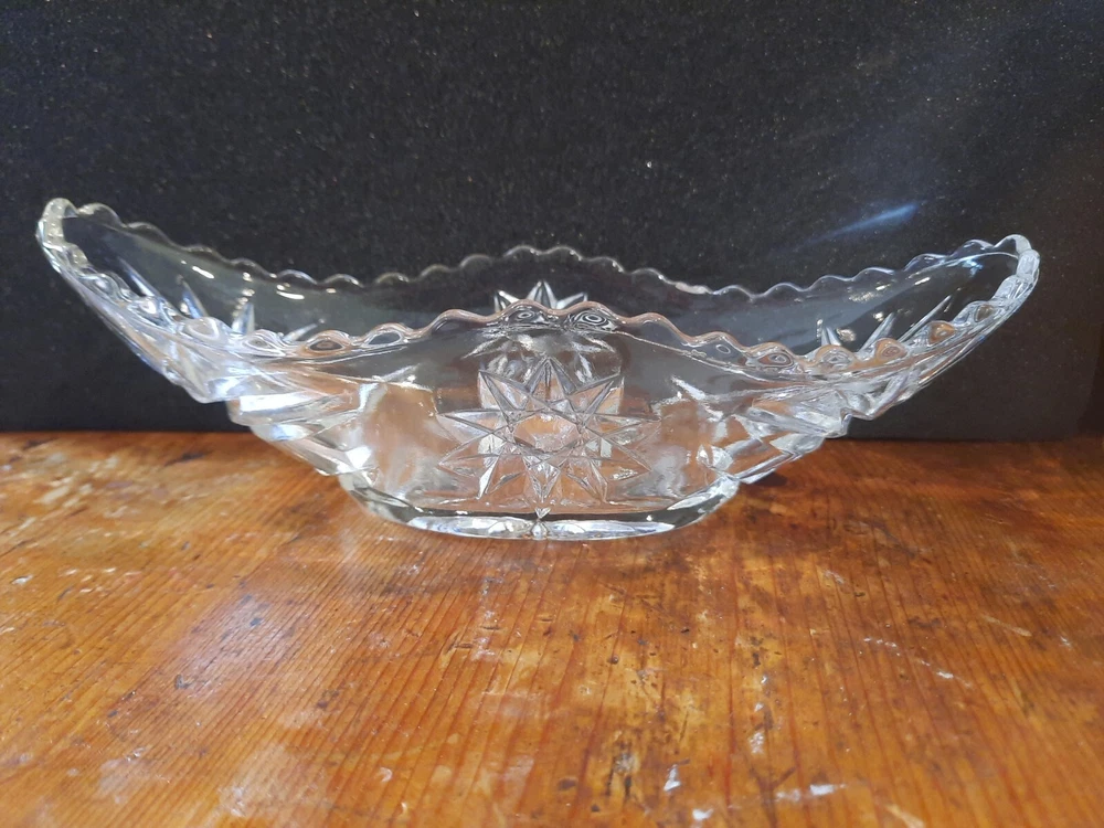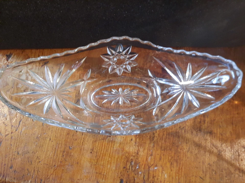 Vintage Anchor Hocking Star of David Clear Glass pickle relish celery Dish 9"
