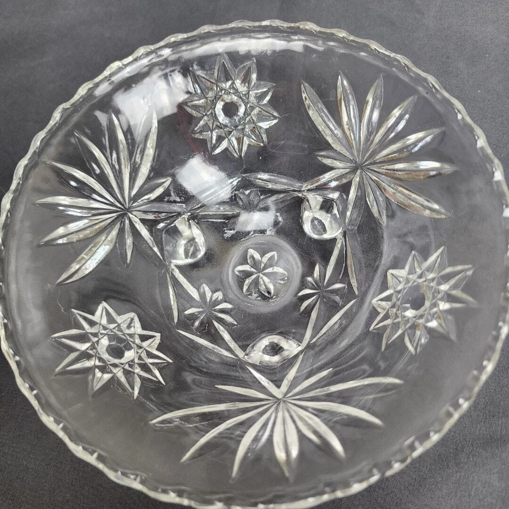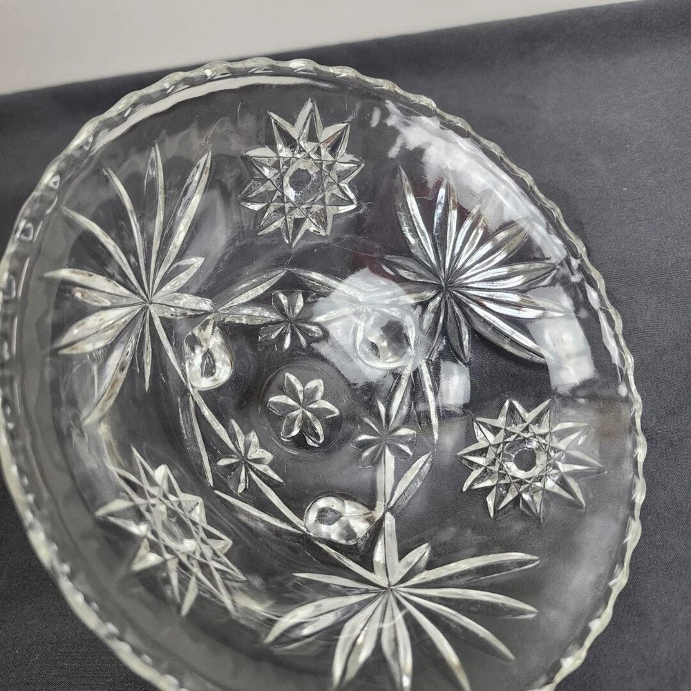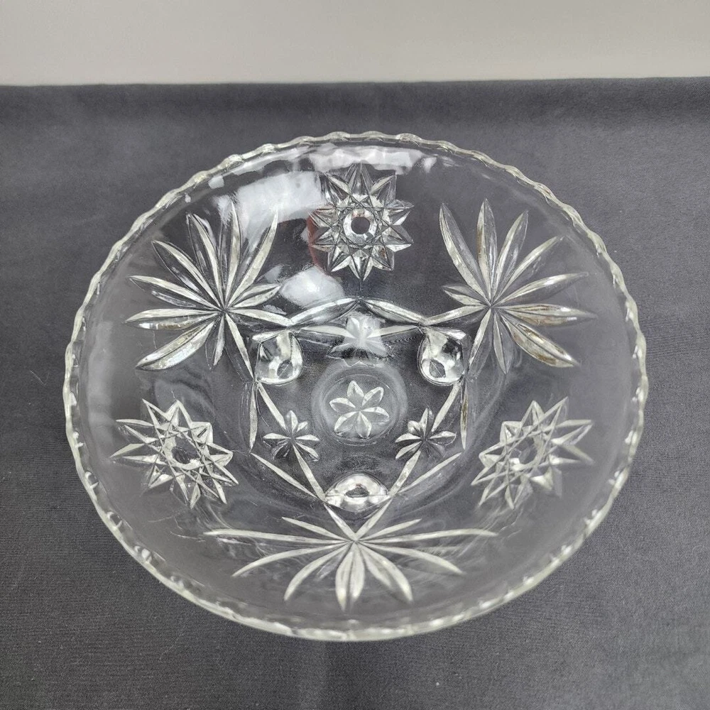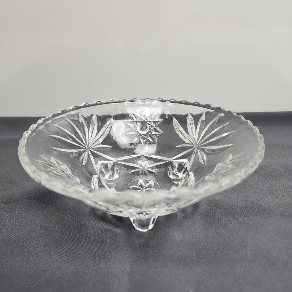 Vintage Anchor Hocking Star of David Crystal Glass Footed Nut Dish Candy Bowl * MAKER: Anchor Hocking * PATTERN: Star of David * TIME PERIOD: 1960-1969 * MATERIAL: Crystal Glass * MEASUREMENT: Round 6.75" / HEIGHT: 2.5" * DETAILS: Vintage Round Glass Footed Bowl Candy / Nut Dish * CONDITION: Very Good No chips, cracks or breaks! (See Images for Specifics) Pre-Owned / Used: A product that has been used previously. View our listing for full details in our description and check out our photos provided. If there are any imperfections, it will be noted in the description and/or within the provided photos. We appreciate you looking at our listing. Before placing an order, feel free to ask any questions you may have about this item. Upon receiving your order, if you are not satisfied with your order, please contact us and we will address any issue.