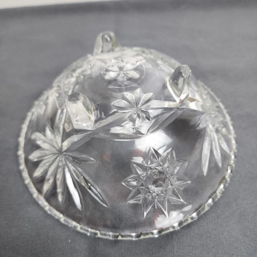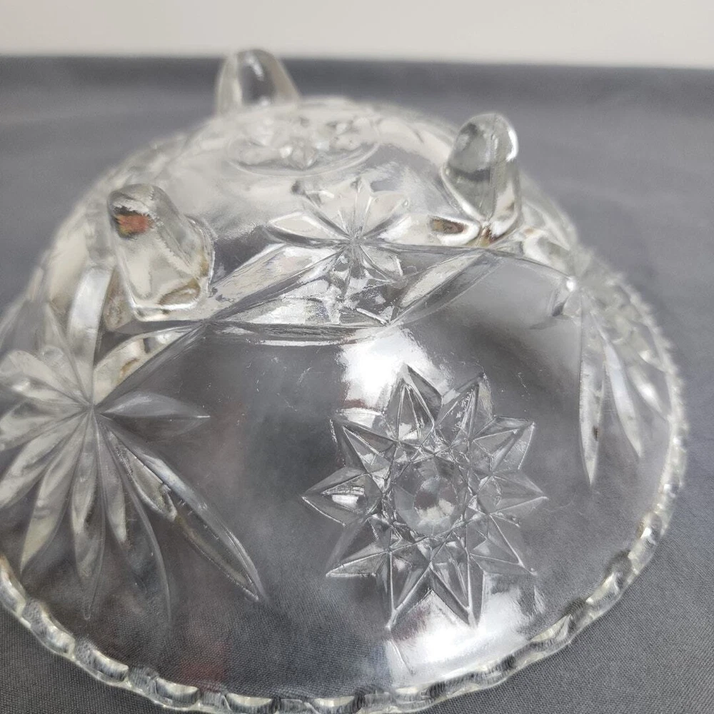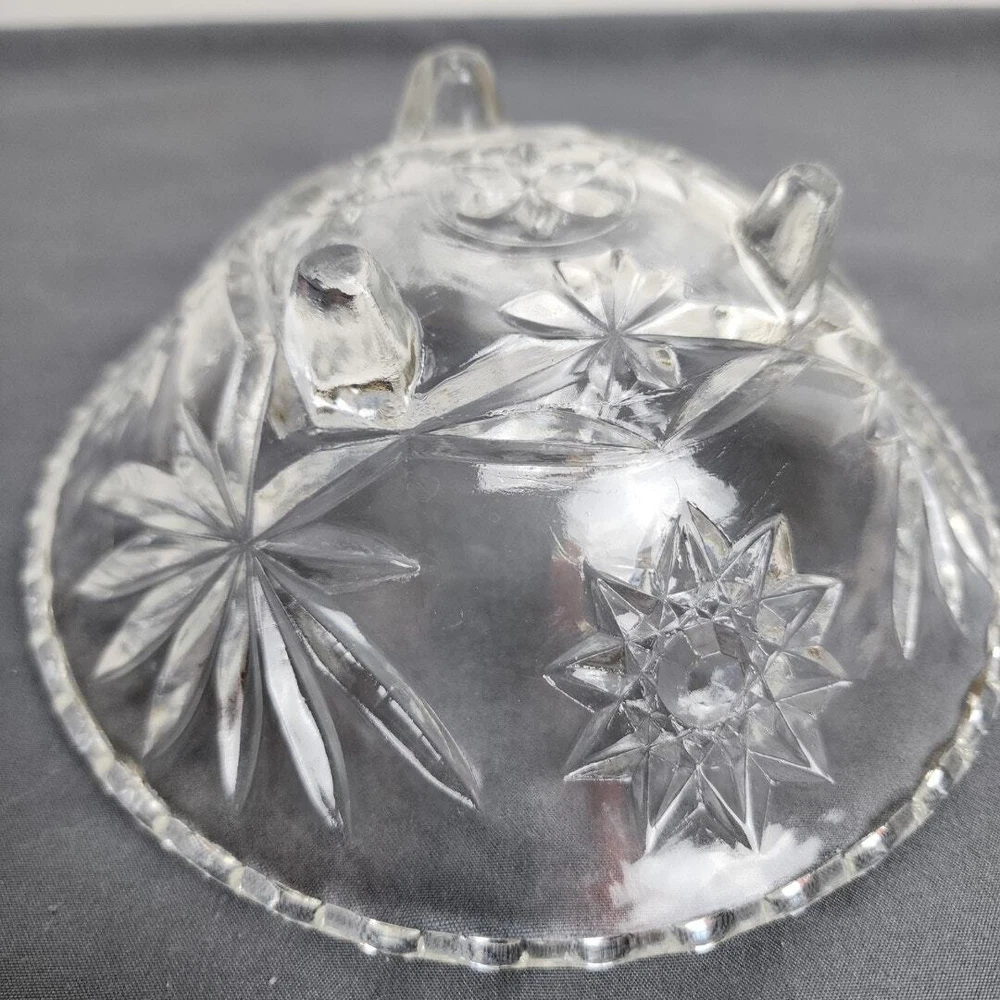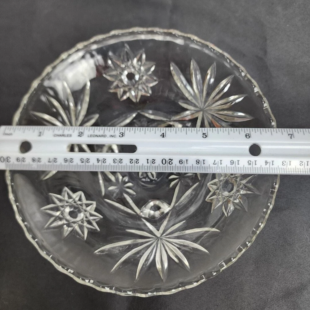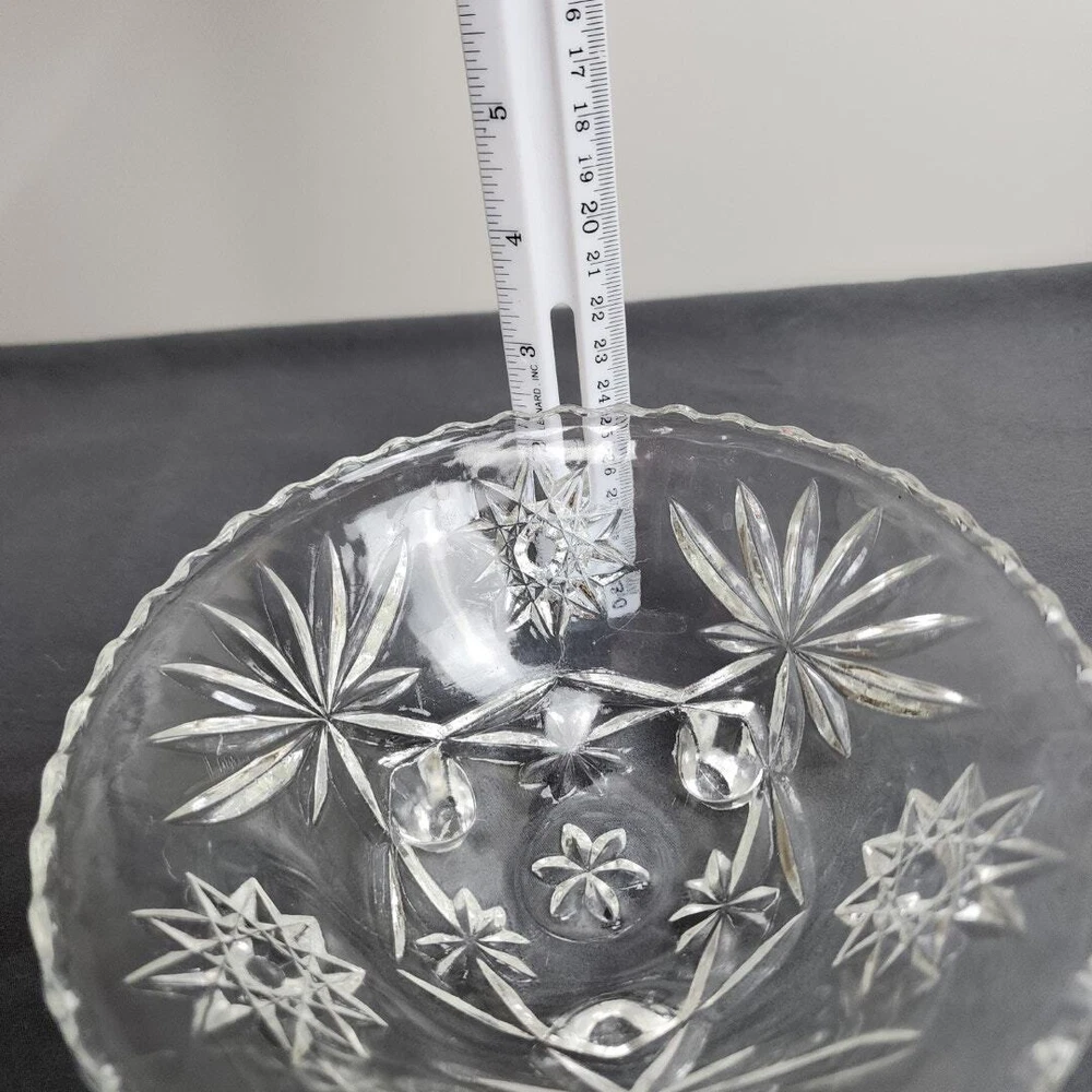 Vintage Anchor Hocking Star of David Crystal Glass Footed Nut Dish Candy Bowl * MAKER: Anchor Hocking * PATTERN: Star of David * TIME PERIOD: 1960-1969 * MATERIAL: Crystal Glass * MEASUREMENT: Round 6.75" / HEIGHT: 2.5" * DETAILS: Vintage Round Glass Footed Bowl Candy / Nut Dish * CONDITION: Very Good No chips, cracks or breaks! (See Images for Specifics) Pre-Owned / Used: A product that has been used previously. View our listing for full details in our description and check out our photos provided. If there are any imperfections, it will be noted in the description and/or within the provided photos. We appreciate you looking at our listing. Before placing an order, feel free to ask any questions you may have about this item. Upon receiving your order, if you are not satisfied with your order, please contact us and we will address any issue.