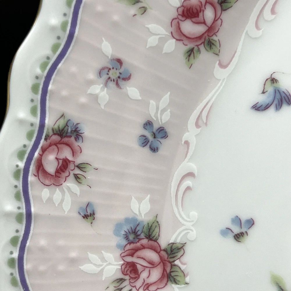Vintage Andrea by Sadek Petit Rose Floral Cake Plate Porcelain Gold Trim 10 "