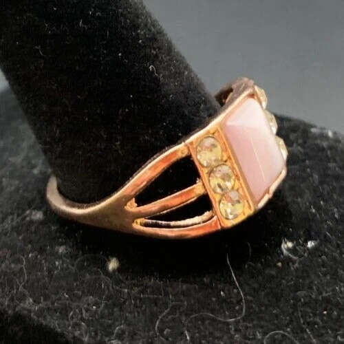 Vintage Antique Gold Tone Rhinestone CZ Ring - Size 10.5