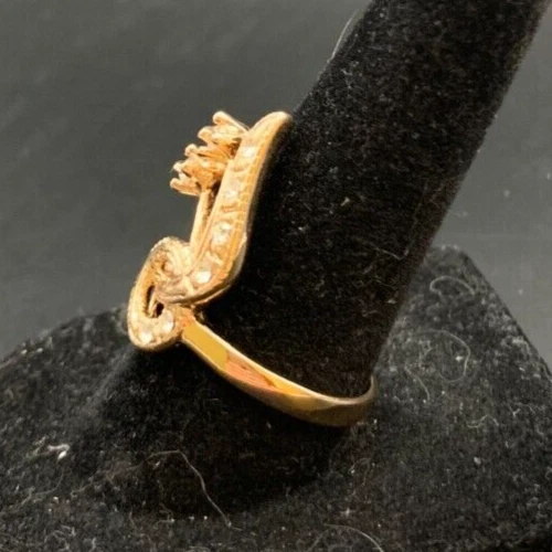 Vintage Antique Gold Tone Rhinestone Cocktail Ring - Size 7.5