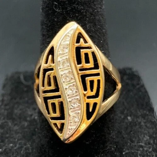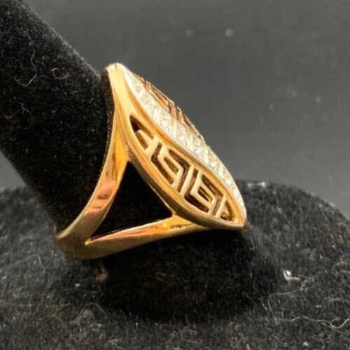Vintage Antique Gold Tone Rhinestone Cocktail Ring - Size 7