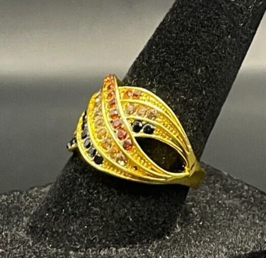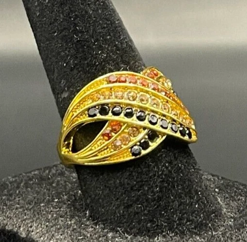 Vintage Antique Gold Tone Rhinestone Cocktail Ring - Size 7