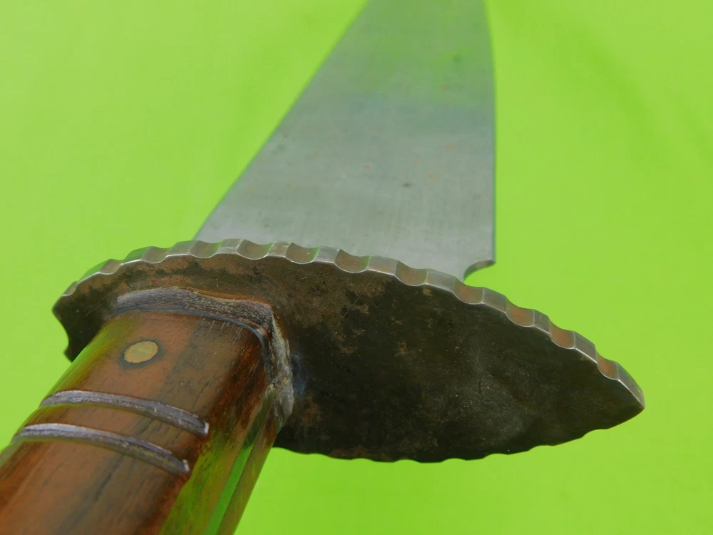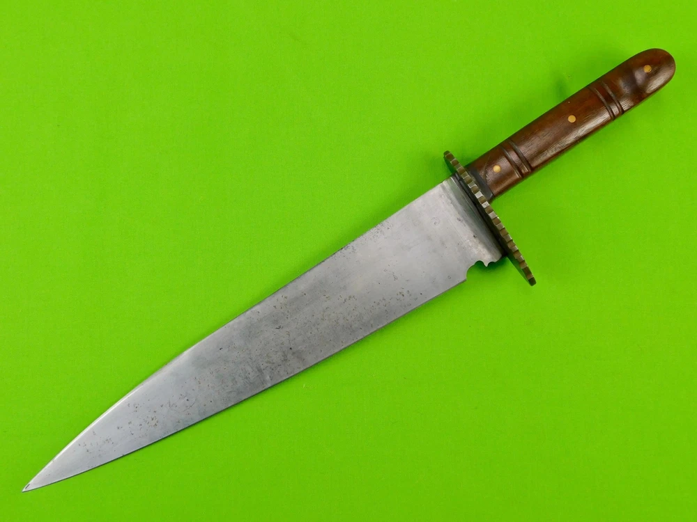 Vintage Antique Old US Custom Made Handmade Large Bowie Knife Vintage Antique Old US Custom Made Handmade Large Bowie Knife Vintage US Custom Made Large Bowie Knife No sheath The knife is solid, with no loose parts Size: 17 1/4" total length, the blade is 12 1/8" SORRY, NO SHIPPING TO GERMANY AT THIS TIME Listing and template services provided by inkFrog