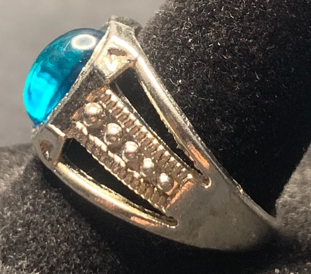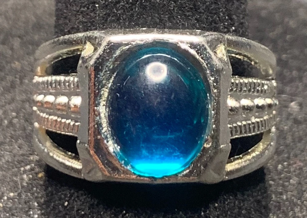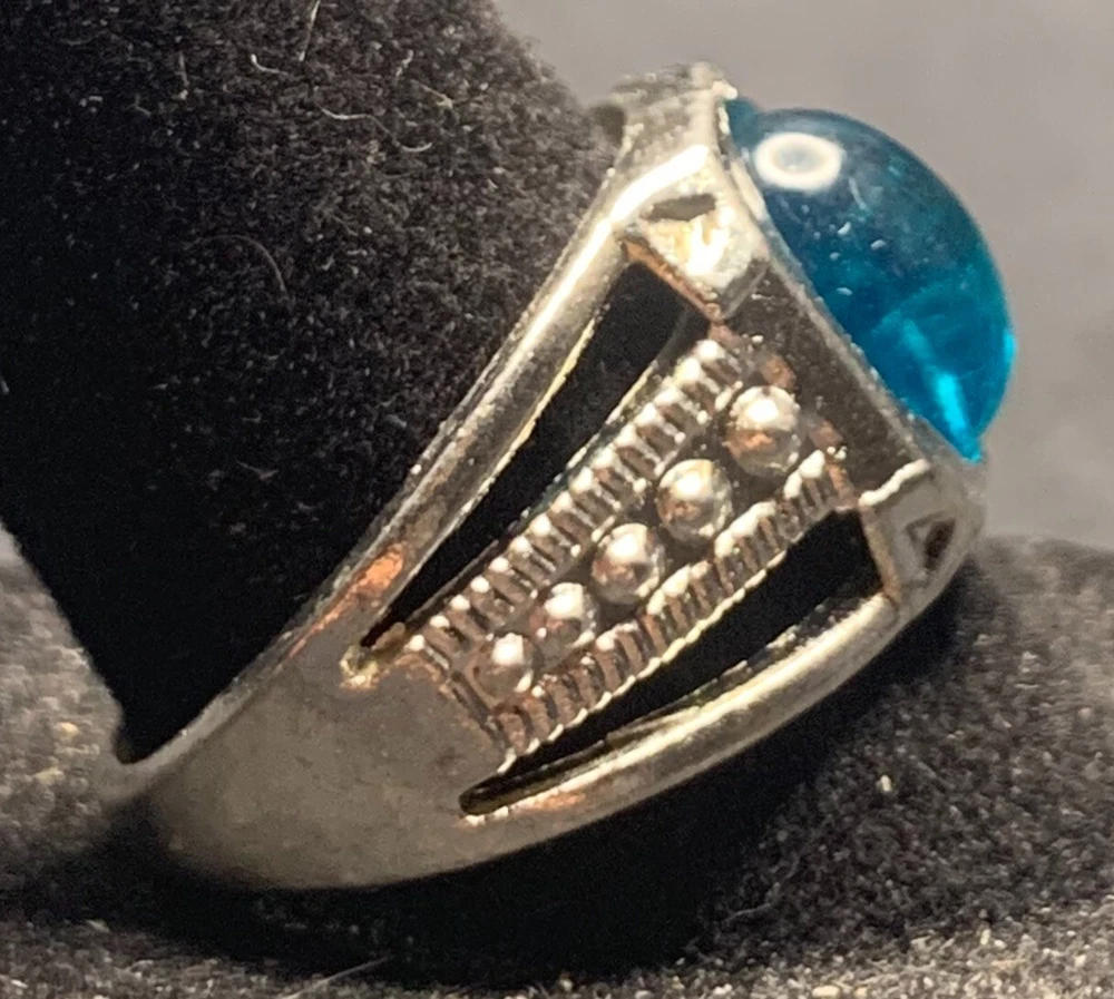 Main Stone: Crystal Metal Purity: Unknown Ring Size: 8.5 Antique: Yes Main Stone Length: Unknown Personalize: No Seller Warranty: No Main Stone Shape: Brilliant Cut Signed: No Main Stone Creation: Unknown UPC: Does not apply Secondary Stone: No Stone Modified Item: No Vintage: Yes Band Width: Unknown Material: Rhinestone, Unknown Era: Undated Country/Region of Manufacture: China Country of Origin: Unknown Theme: Biker Occasion: Anniversary, Birthday, Christmas, Father's Day, Graduation gtin13: Does not apply Color: Silver Main Stone Color: Blue Customized: No Main Stone Depth: Unknown Cut Grade: Excellent Metal: Stainless Steel Style: Band, Cocktail Main Stone Width: Unknown Wholesale: No Setting Style: Solitaire Gemstone Clarity Grade: Unknown Sizable: No Brand: Unbranded Shape: Asymmetrical Handmade: No Number of Gemstones: Unknown Type: Ring Features: Engraved, Nickel-Free Base Metal: Stainless Steel