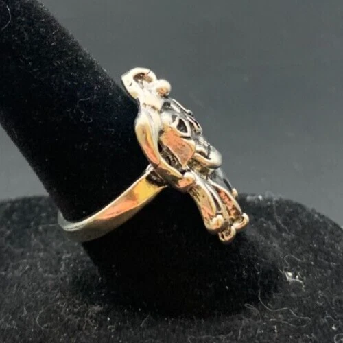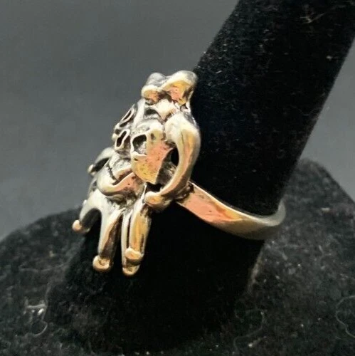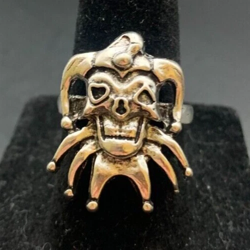Vintage Antique Silver Tone Joker Skull Ring - Size 6