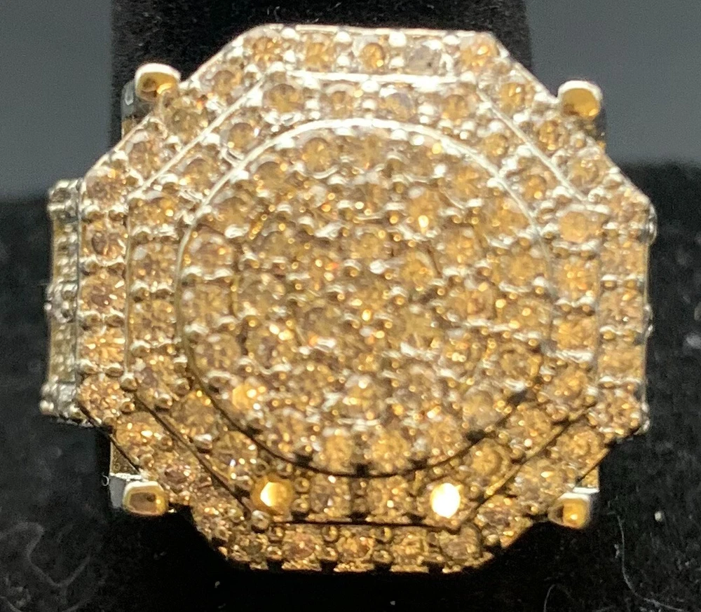 Vintage Antique Silver Tone Rhinestone CZ Cocktail Ring - Size 8.5