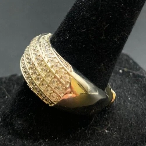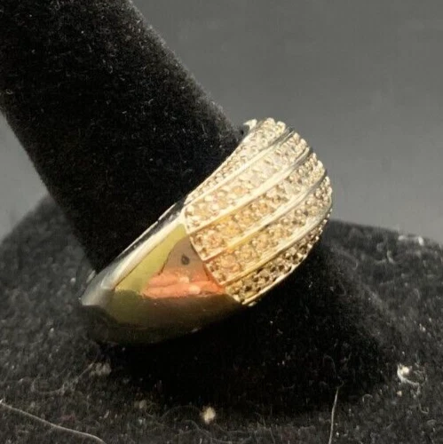 Vintage Antique Silver Tone Rhinestone CZ Cocktail Ring - Size 8