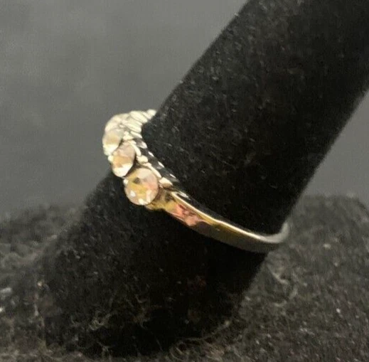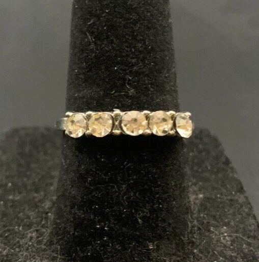 Vintage Antique Silver Tone Rhinestone CZ Ring - Size 6.5